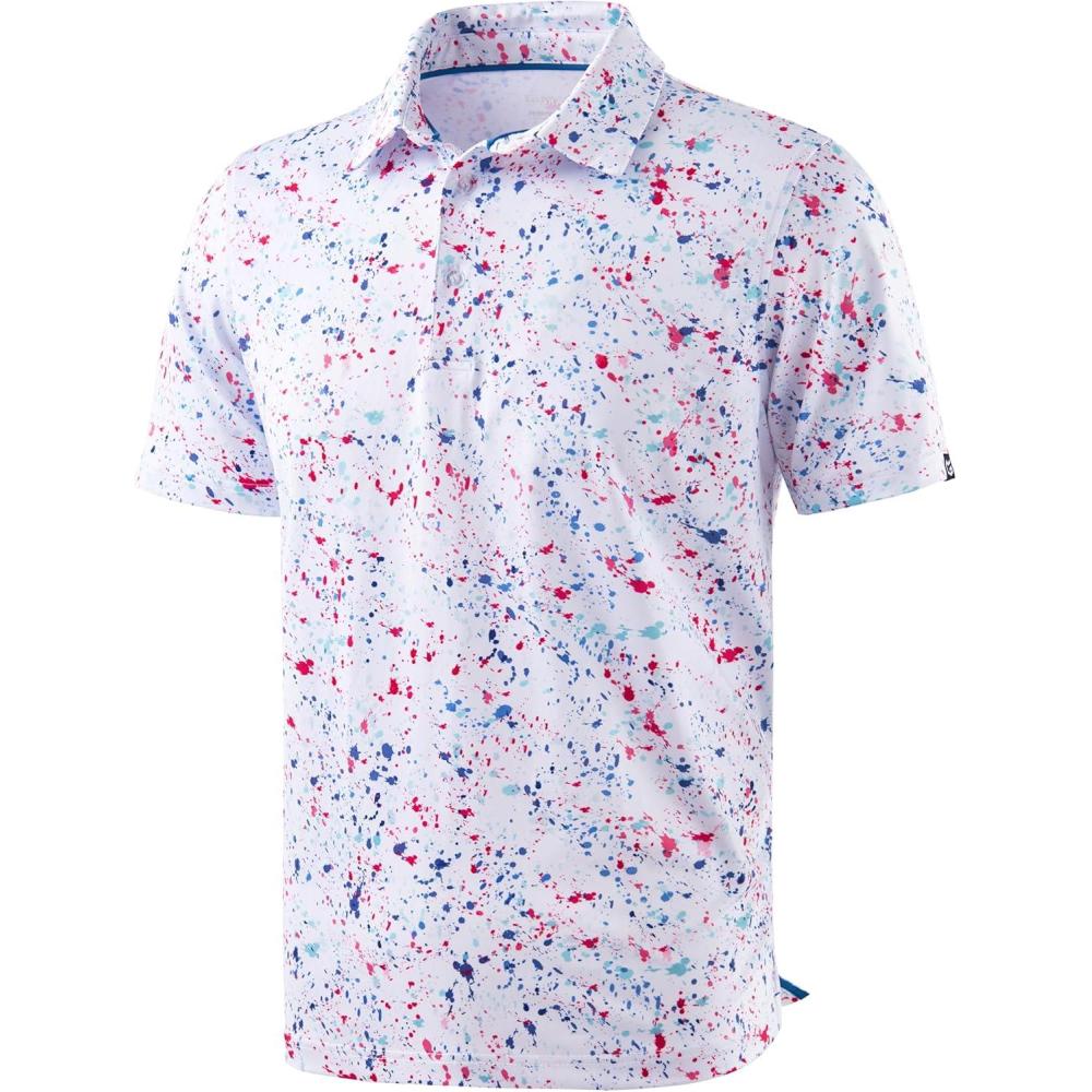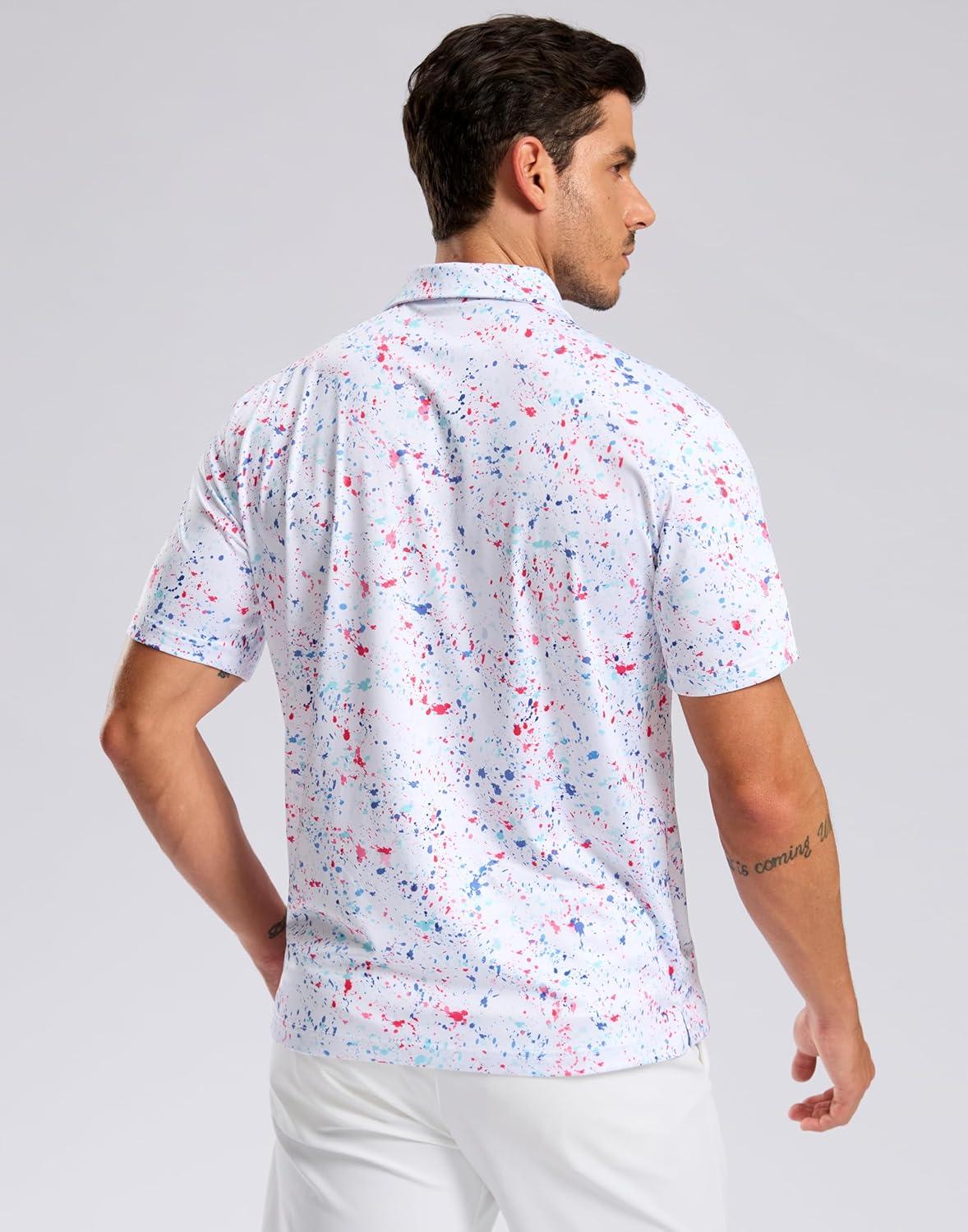 Men's Golf Shirt Short Sleeve Dry Fit Polo Moisture Wicking Print Collared Golf Shirts for Men Casual Lightweight(White Colored Dots)