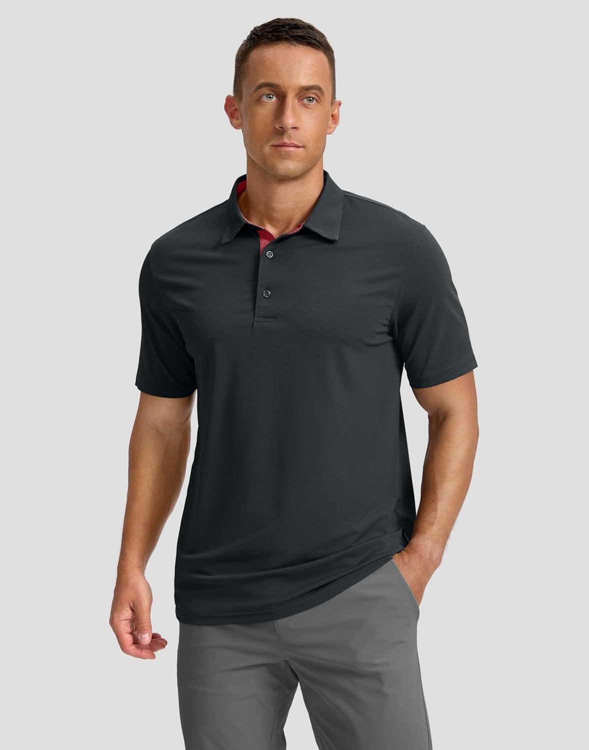 Men’s Golf Shirts Dry Fit Moisture Wicking Performance Short Sleeve Collared Polo Shirts for Casual Athletic Business(A-dark Grey)