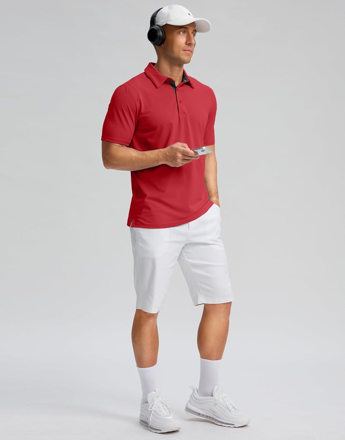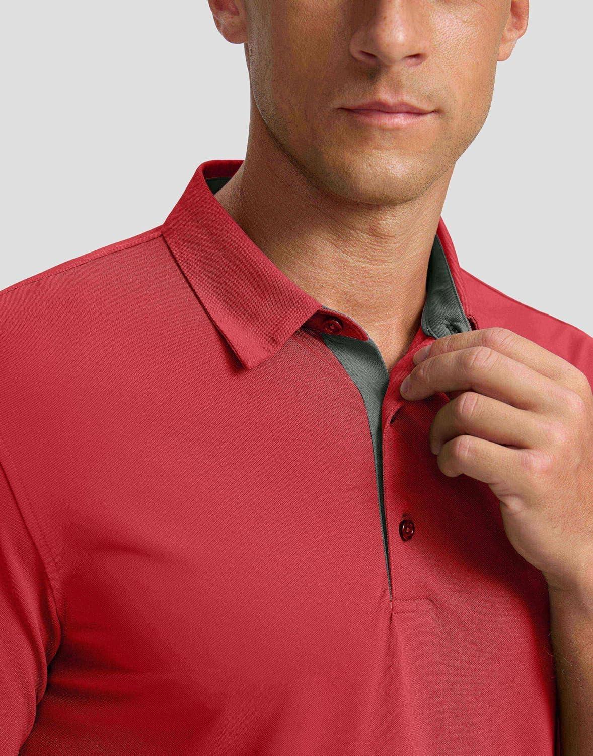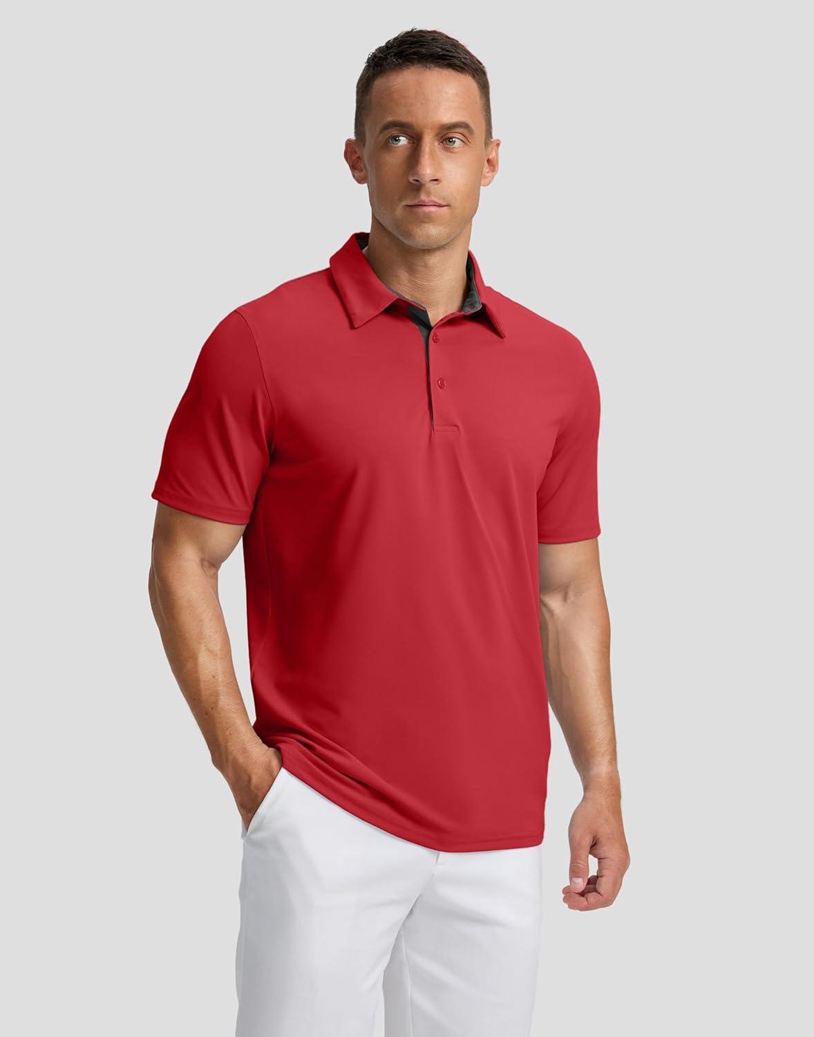Men's Golf Shirts Dry Fit Moisture Wicking Performance Short Sleeve Collared Polo Shirts for Casual Athletic Business(A-dark Red)