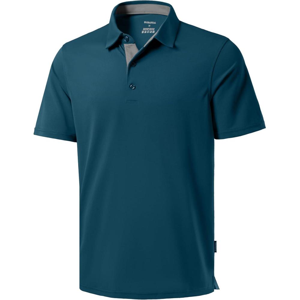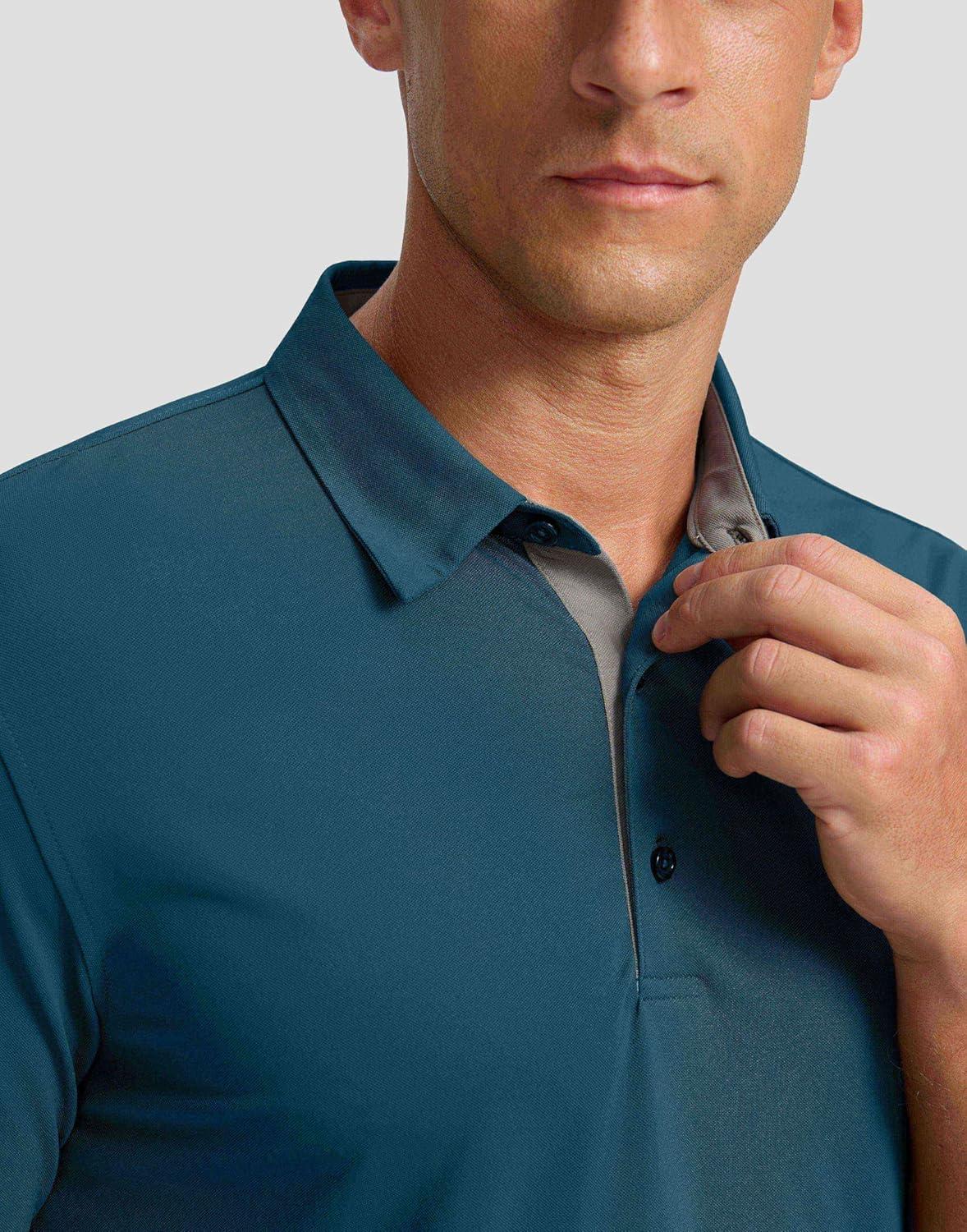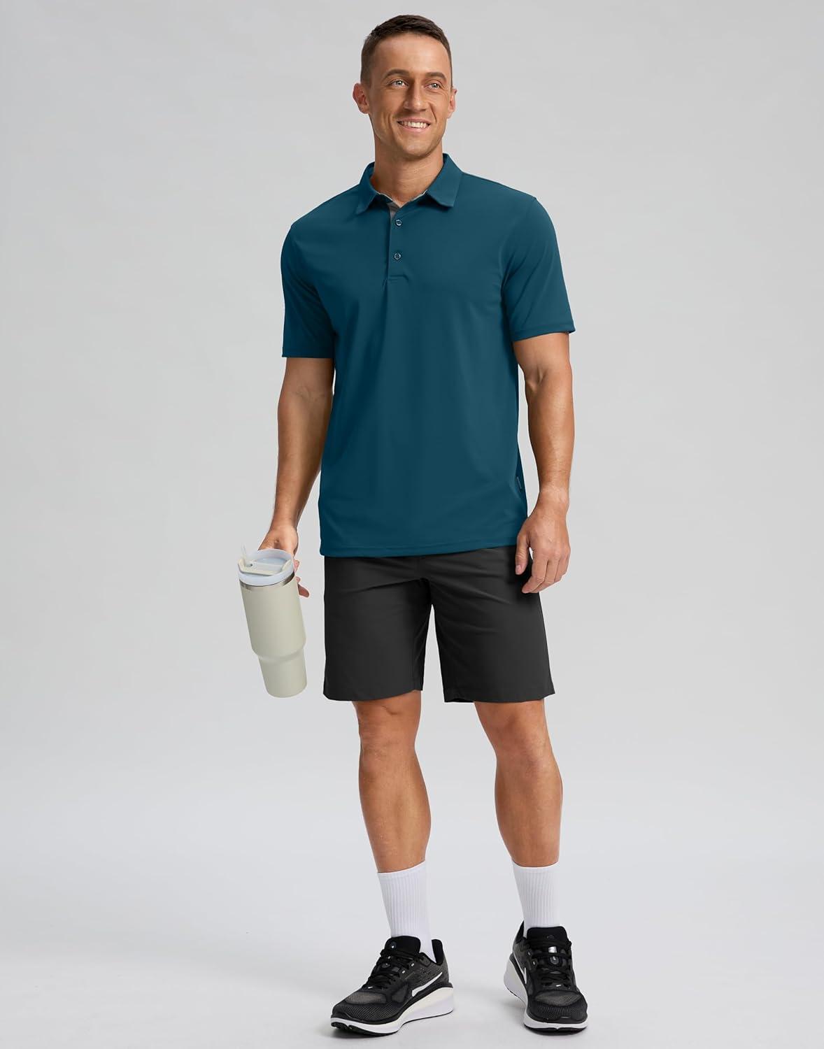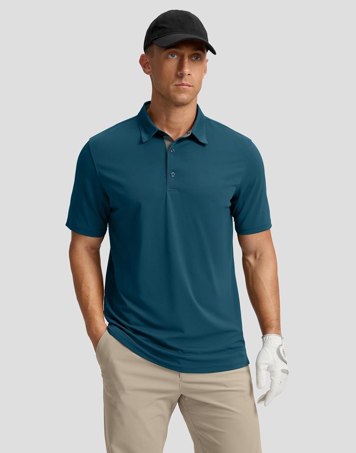 Men's Golf Shirts Dry Fit Moisture Wicking Performance Short Sleeve Collared Polo Shirts for Casual Athletic Business(A-reflecting Pond)