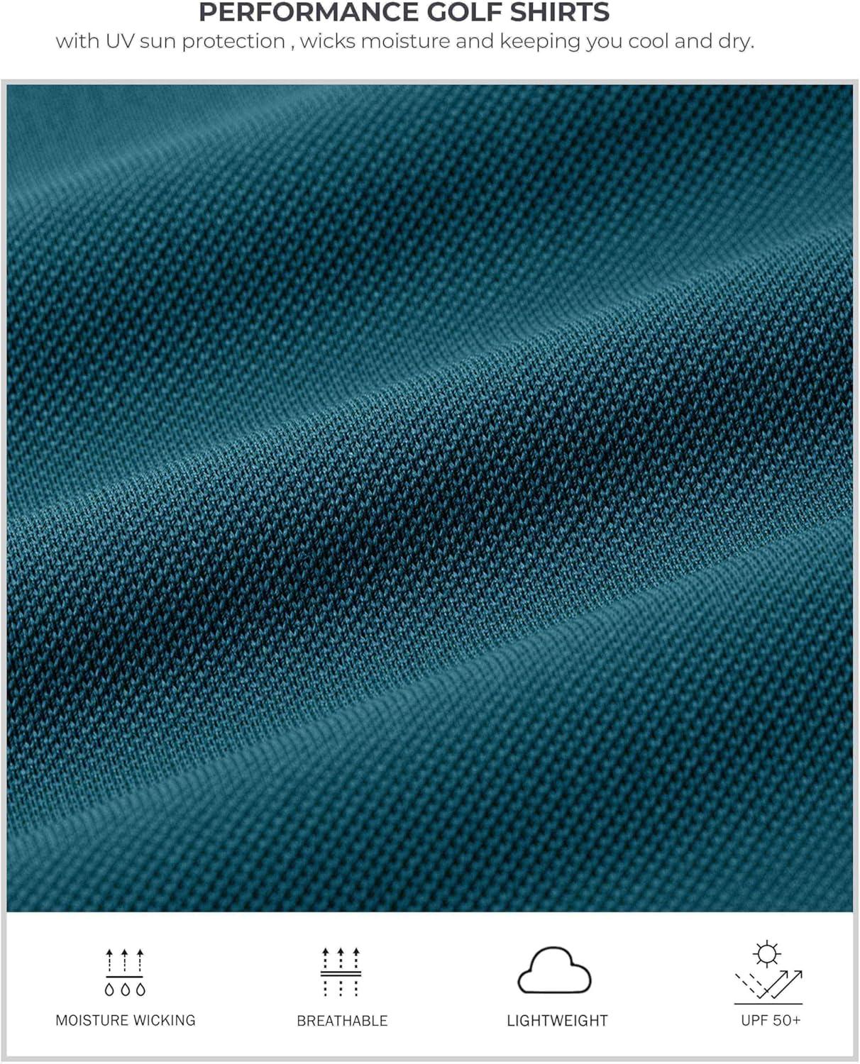 Men’s Golf Shirts Dry Fit Moisture Wicking Performance Short Sleeve Collared Polo Shirts for Casual Athletic Business(A-reflecting Pond)