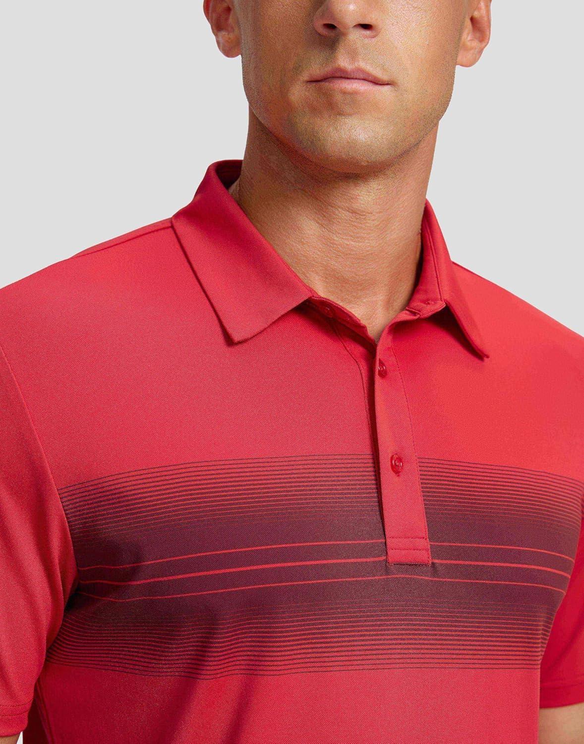 Men's Golf Shirts Dry Fit Moisture Wicking Performance Short Sleeve Collared Polo Shirts for Casual Athletic Business(B-red Stripe)