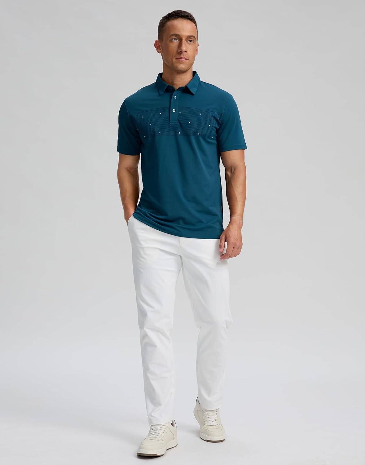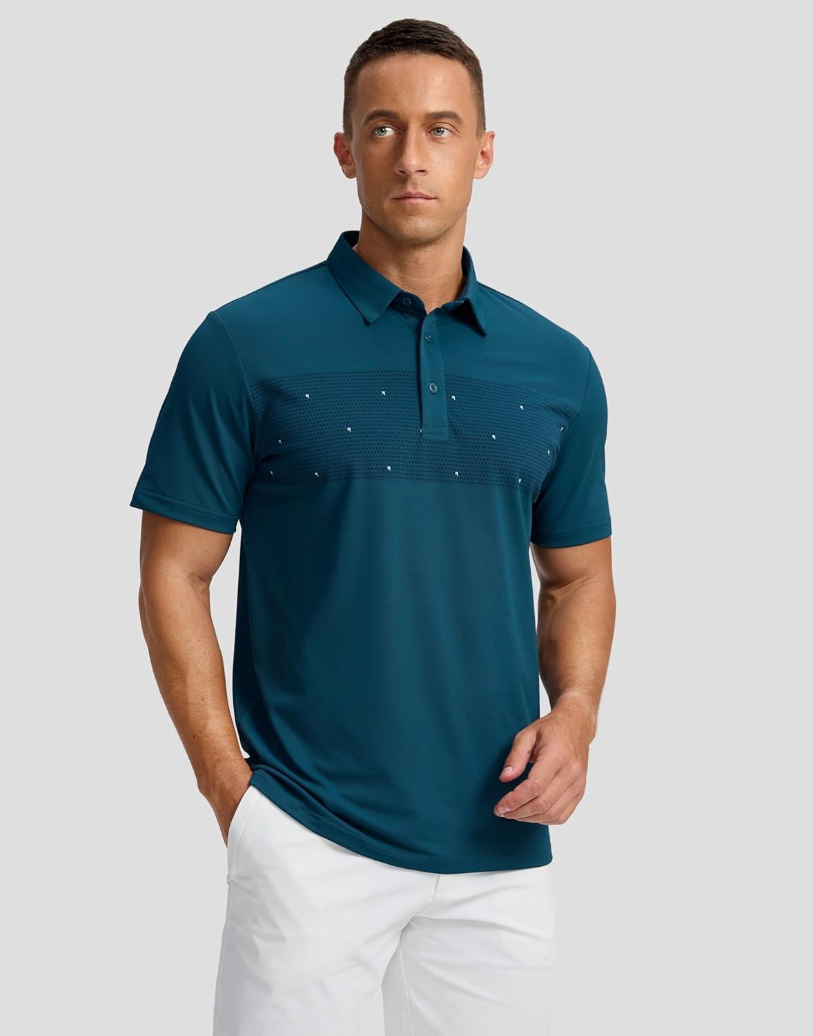 Men’s Golf Shirts Dry Fit Moisture Wicking Performance Short Sleeve Collared Polo Shirts for Casual Athletic Business(A-pink)