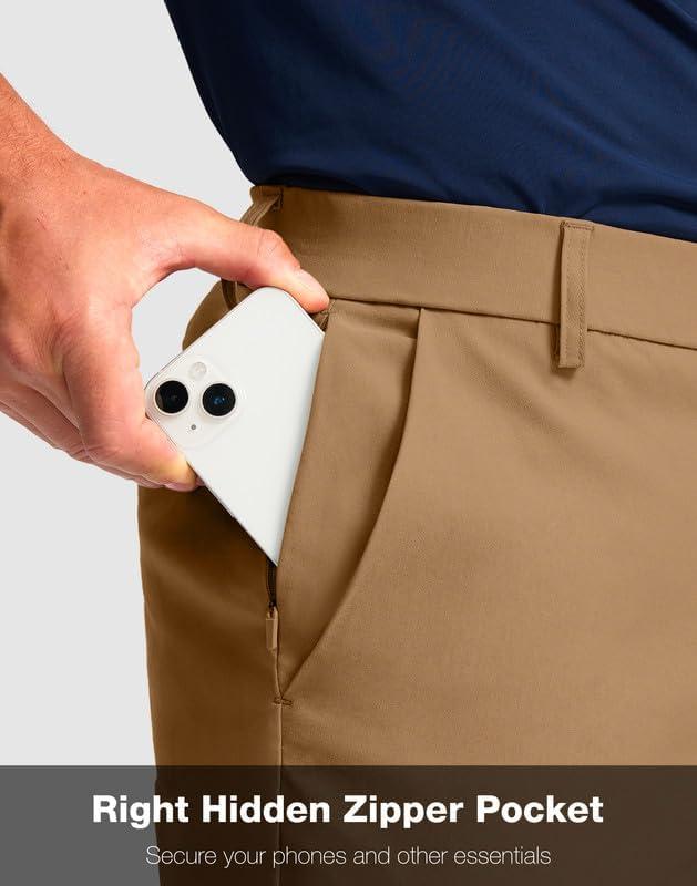 Men's Golf Shorts with 5 Pockets 11" Inseam Stretch Quick Dry Casual Work Dress Shorts for Men(Dark Khaki)