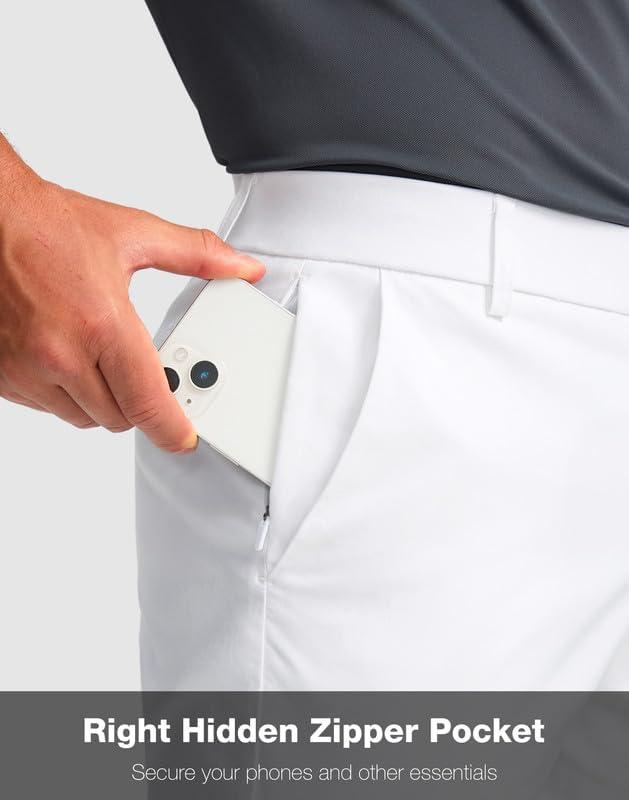 Men’s Golf Shorts with 5 Pockets 11″ Inseam Stretch Quick Dry Casual Work Dress Shorts for Men(White)