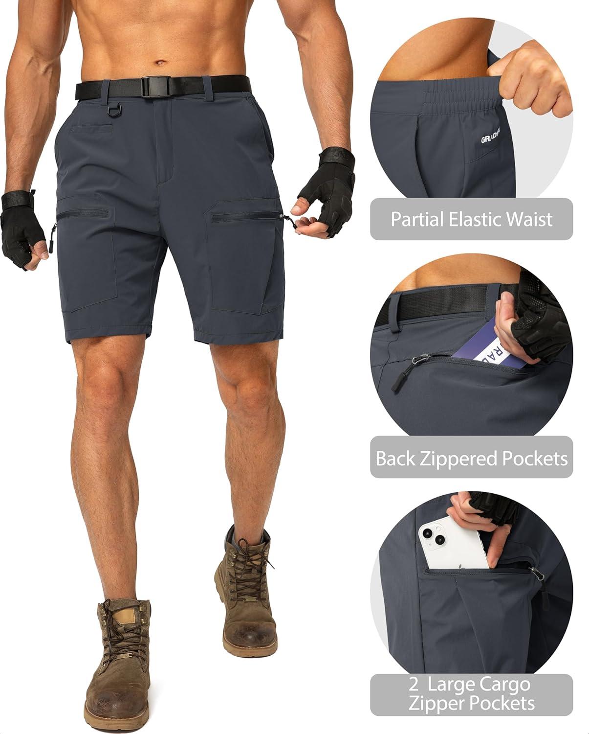 Men's Hiking Cargo Shorts Stretch Quick Dry Outdoor Tactical Shorts for Men with Multi Pocket for Fishing Casual(Dark Gray)