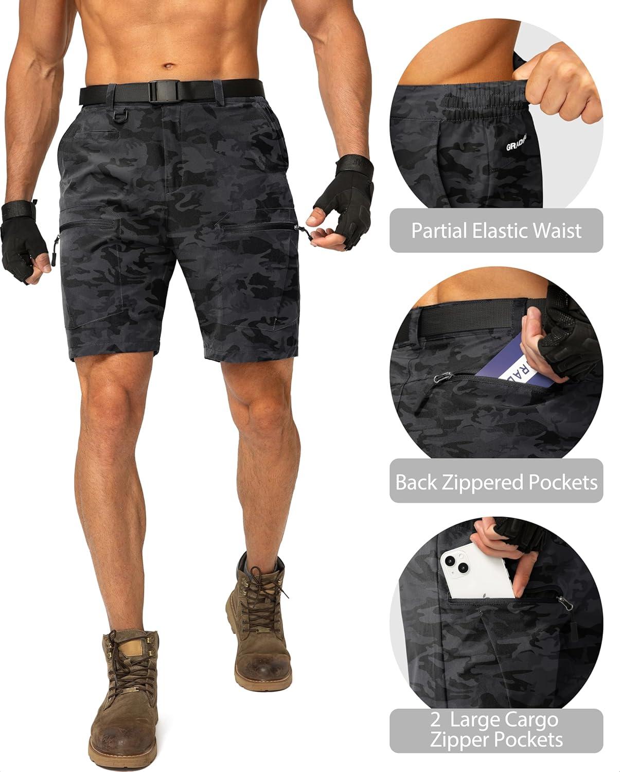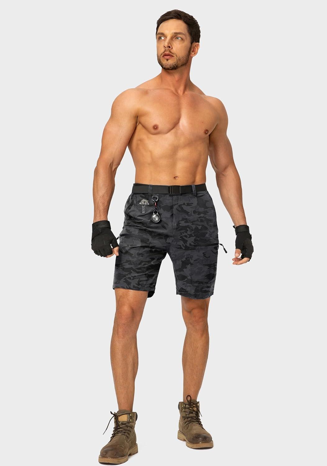 Men's Hiking Cargo Shorts Stretch Quick Dry Outdoor Tactical Shorts for Men with Multi Pocket for Fishing Casual(Gray Camo)