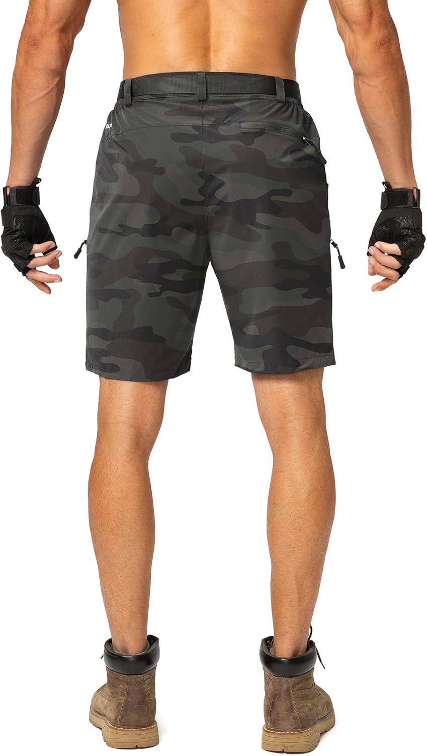 Men’s Hiking Cargo Shorts Stretch Quick Dry Outdoor Tactical Shorts for Men with Multi Pocket for Fishing Casual(Green Camo)