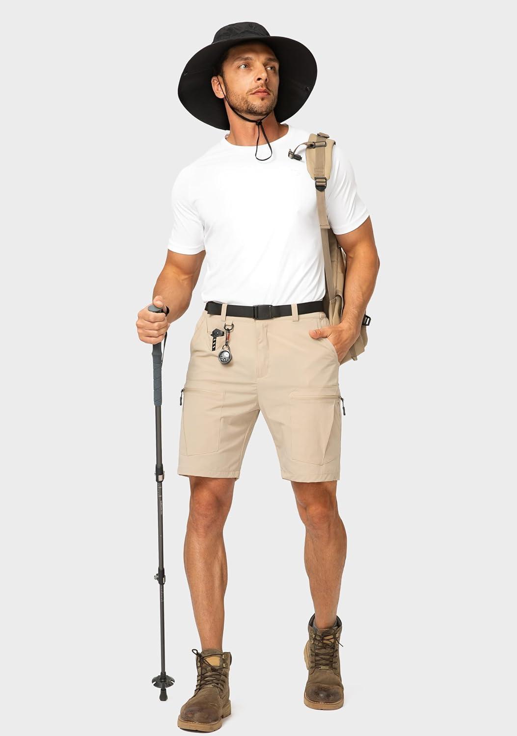 Men's Hiking Cargo Shorts Stretch Quick Dry Outdoor Tactical Shorts for Men with Multi Pocket for Fishing Casual(Khaki)