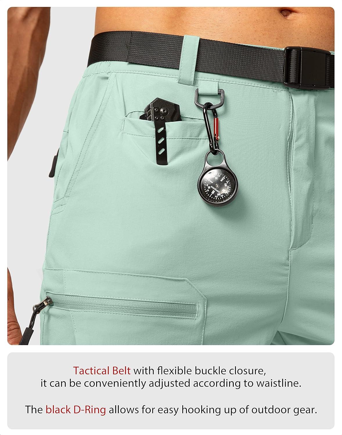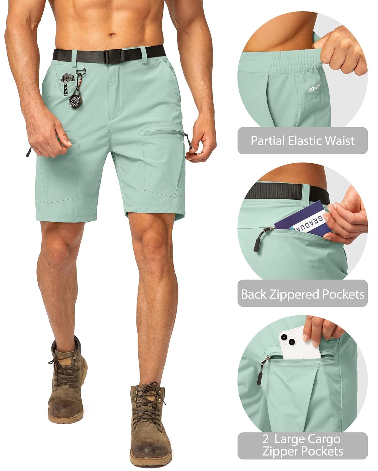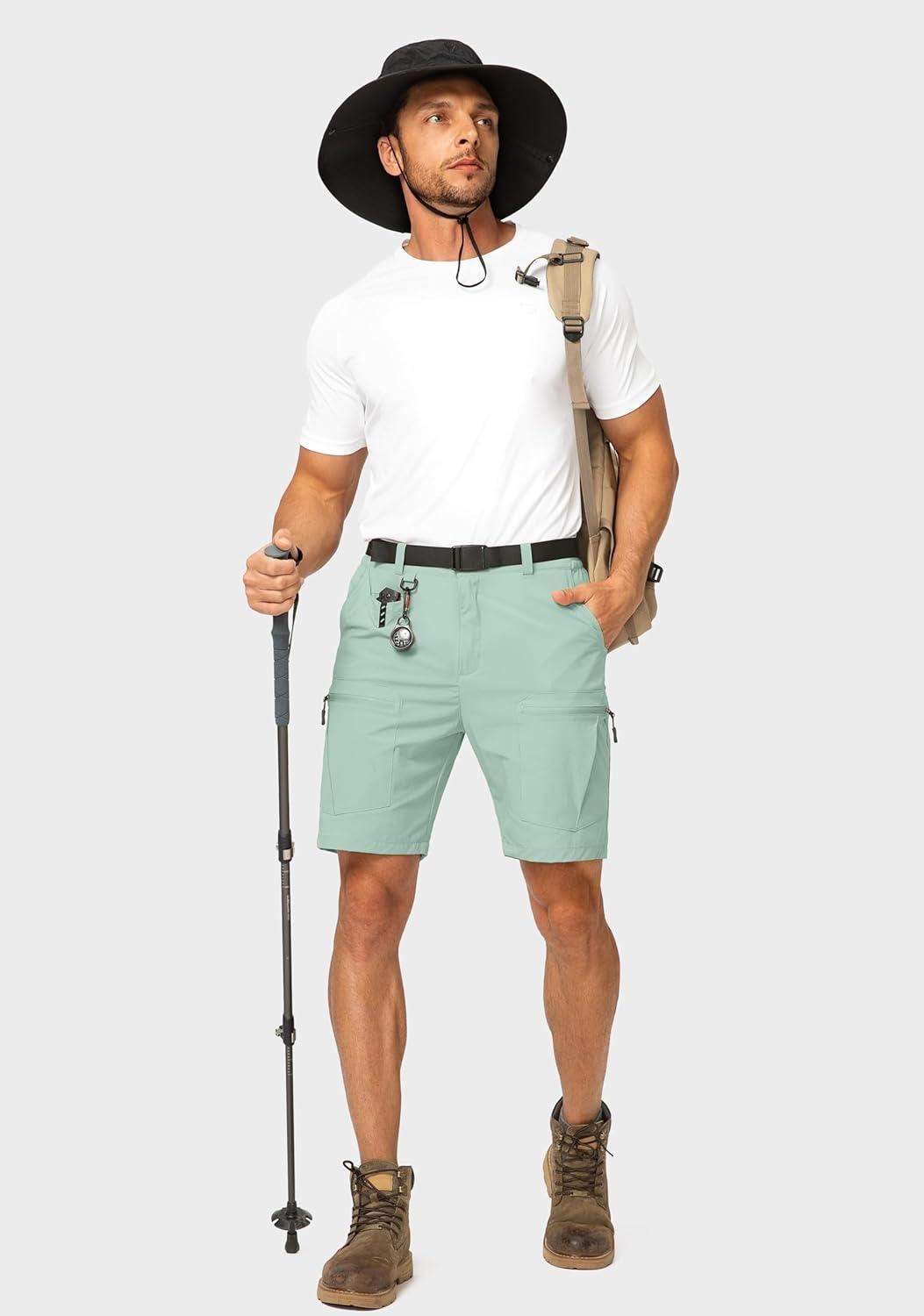 Men's Hiking Cargo Shorts Stretch Quick Dry Outdoor Tactical Shorts for Men with Multi Pocket for Fishing Casual(Mint Green)