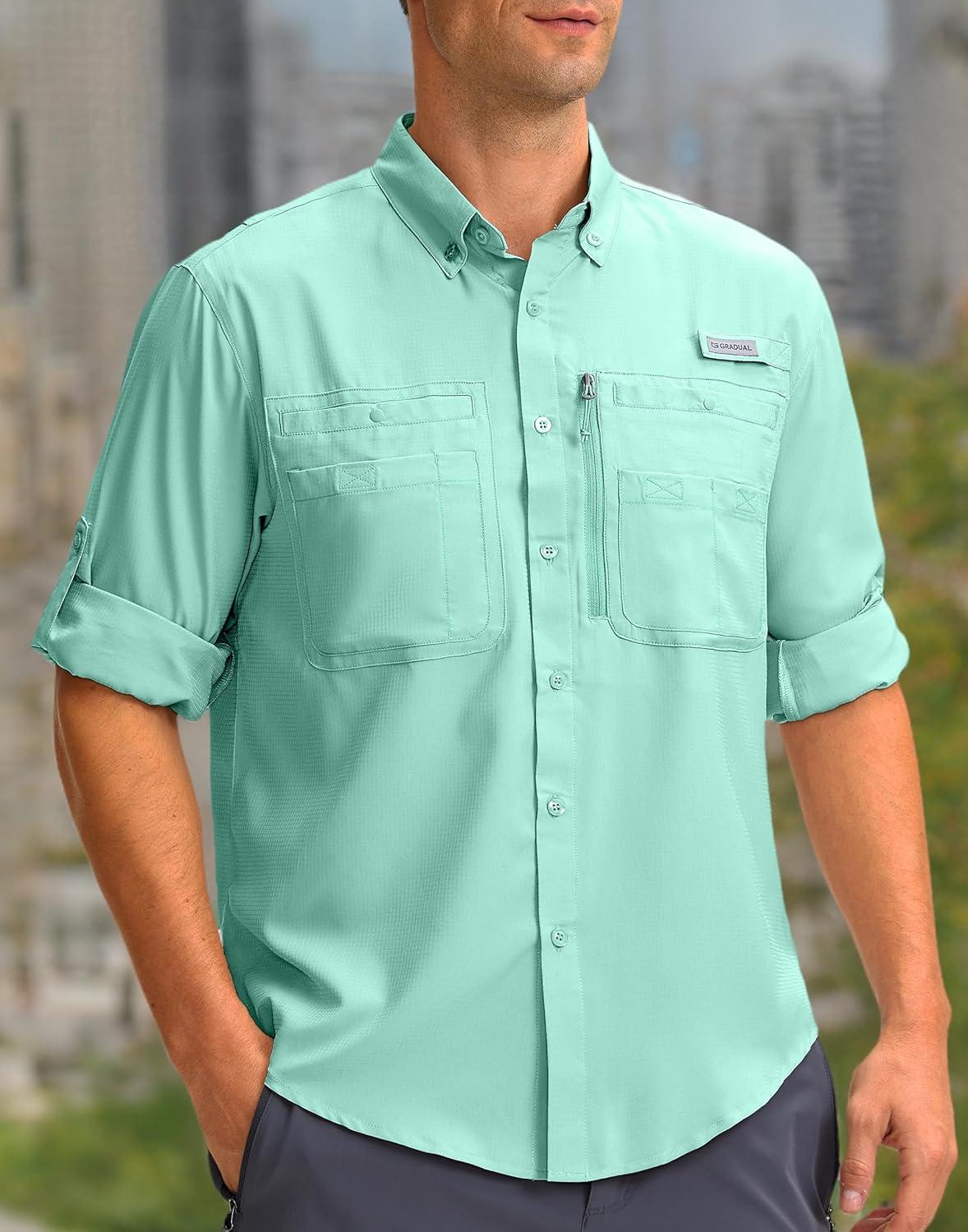 Men's Long Sleeve Sun Protection Fishing Shirt with Zipper Pockets UPF 50+ Lightweight Cool Sun Shirts for Men Hiking Outdoor(Arona)