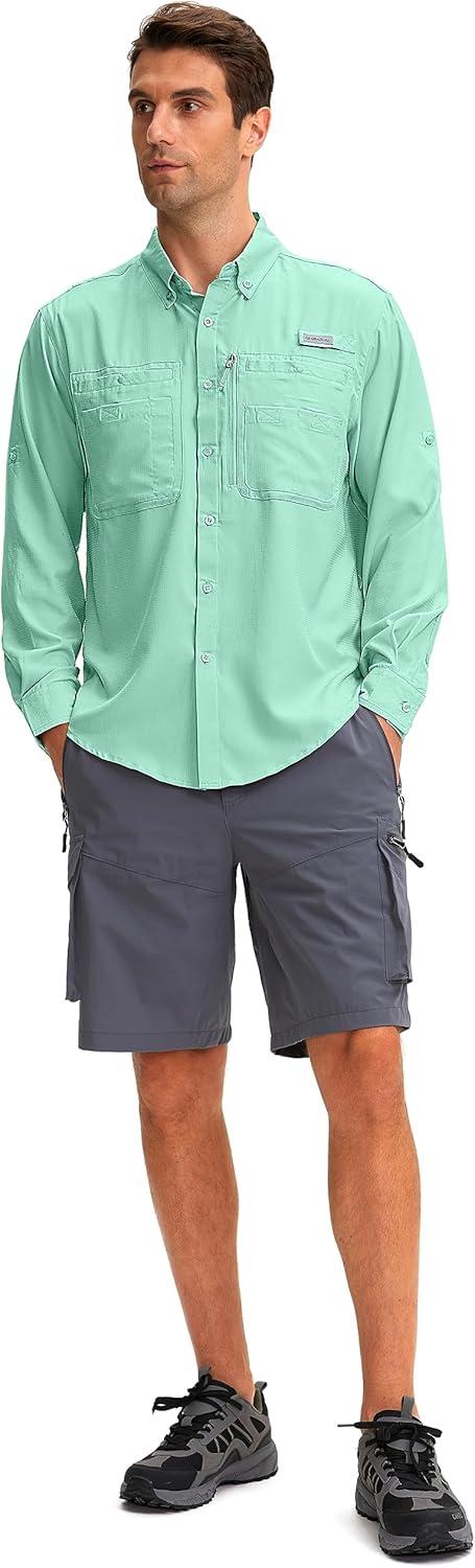 Men’s Long Sleeve Sun Protection Fishing Shirt with Zipper Pockets UPF 50+ Lightweight Cool Sun Shirts for Men Hiking Outdoor(Arona)