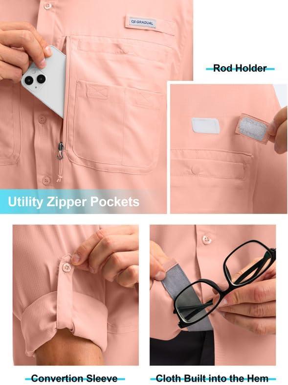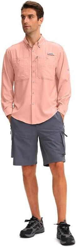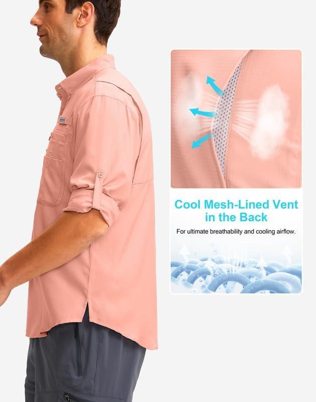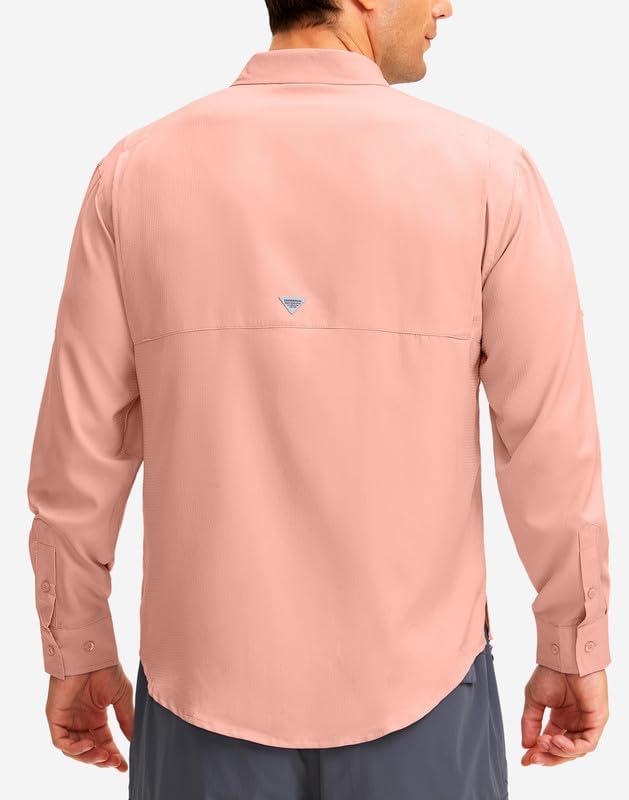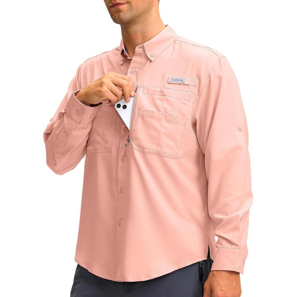Men’s Long Sleeve Sun Protection Fishing Shirt with Zipper Pockets UPF 50+ Lightweight Cool Sun Shirts for Men Hiking Outdoor(Light Pink)