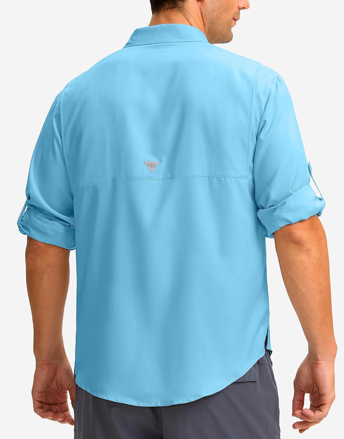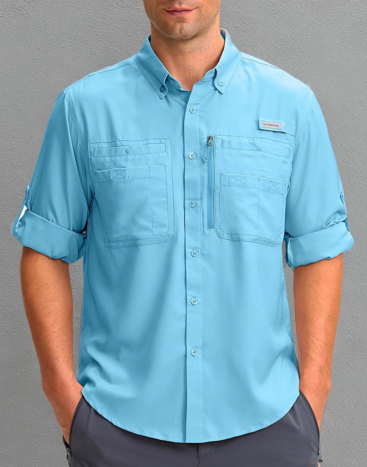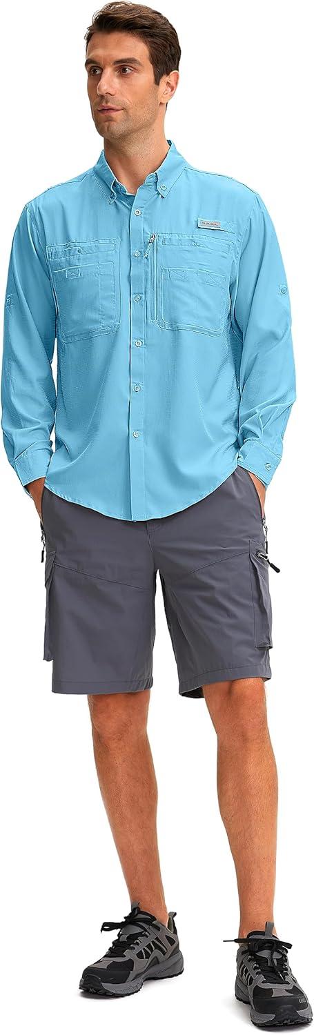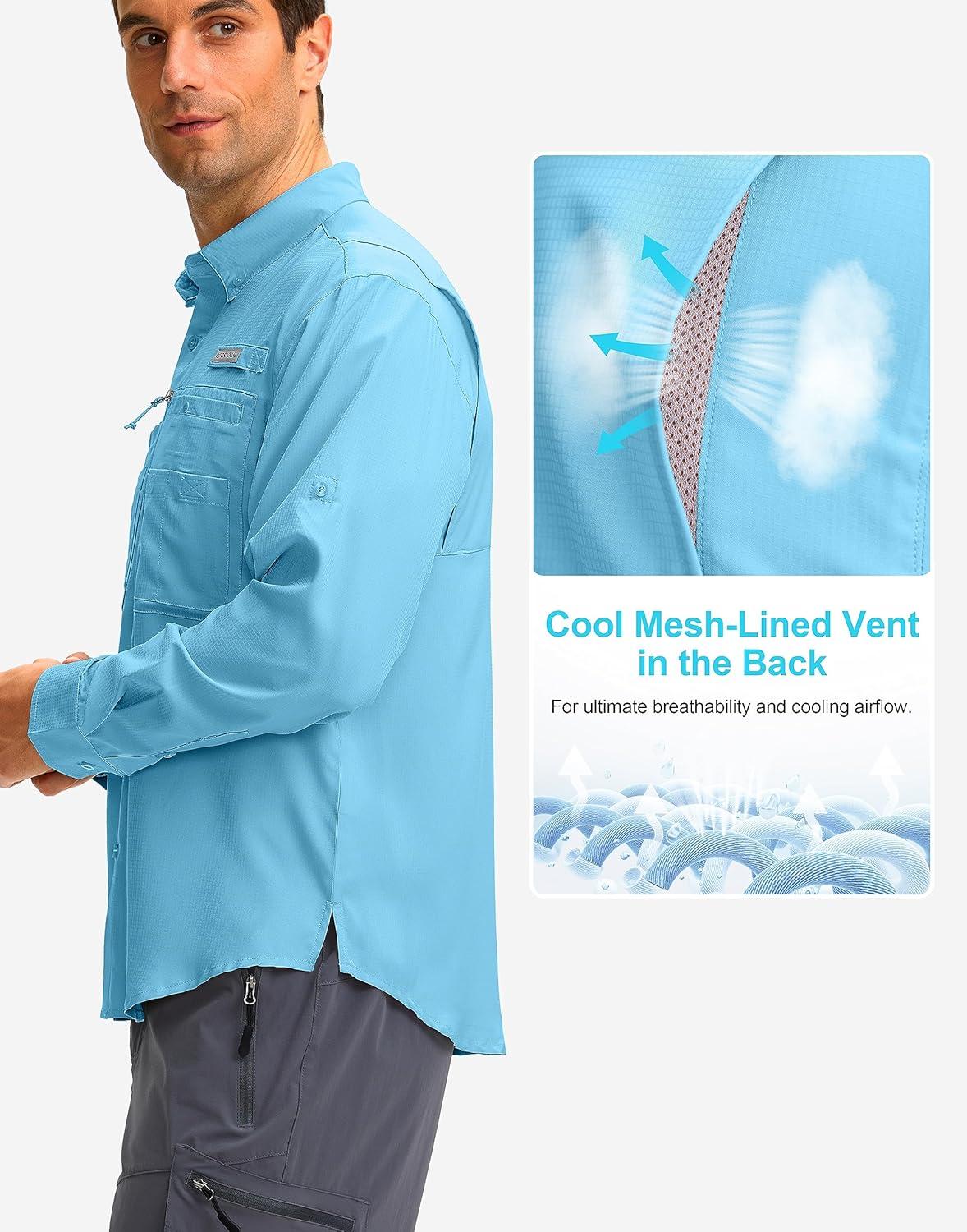Men's Long Sleeve Sun Protection Fishing Shirt with Zipper Pockets UPF 50+ Lightweight Cool Sun Shirts for Men Hiking Outdoor(Sail)