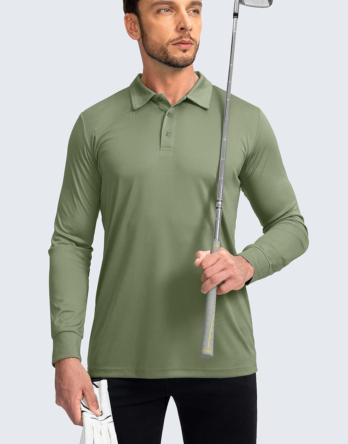 Men's Polo Shirt Long Sleeve Golf Shirts Lightweight UPF 50+ Sun Protection Cool Shirts for Men Work Fishing Outdoor(Olive)