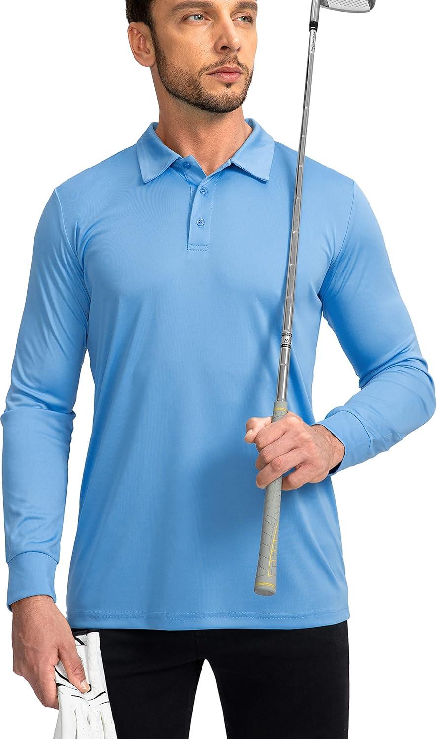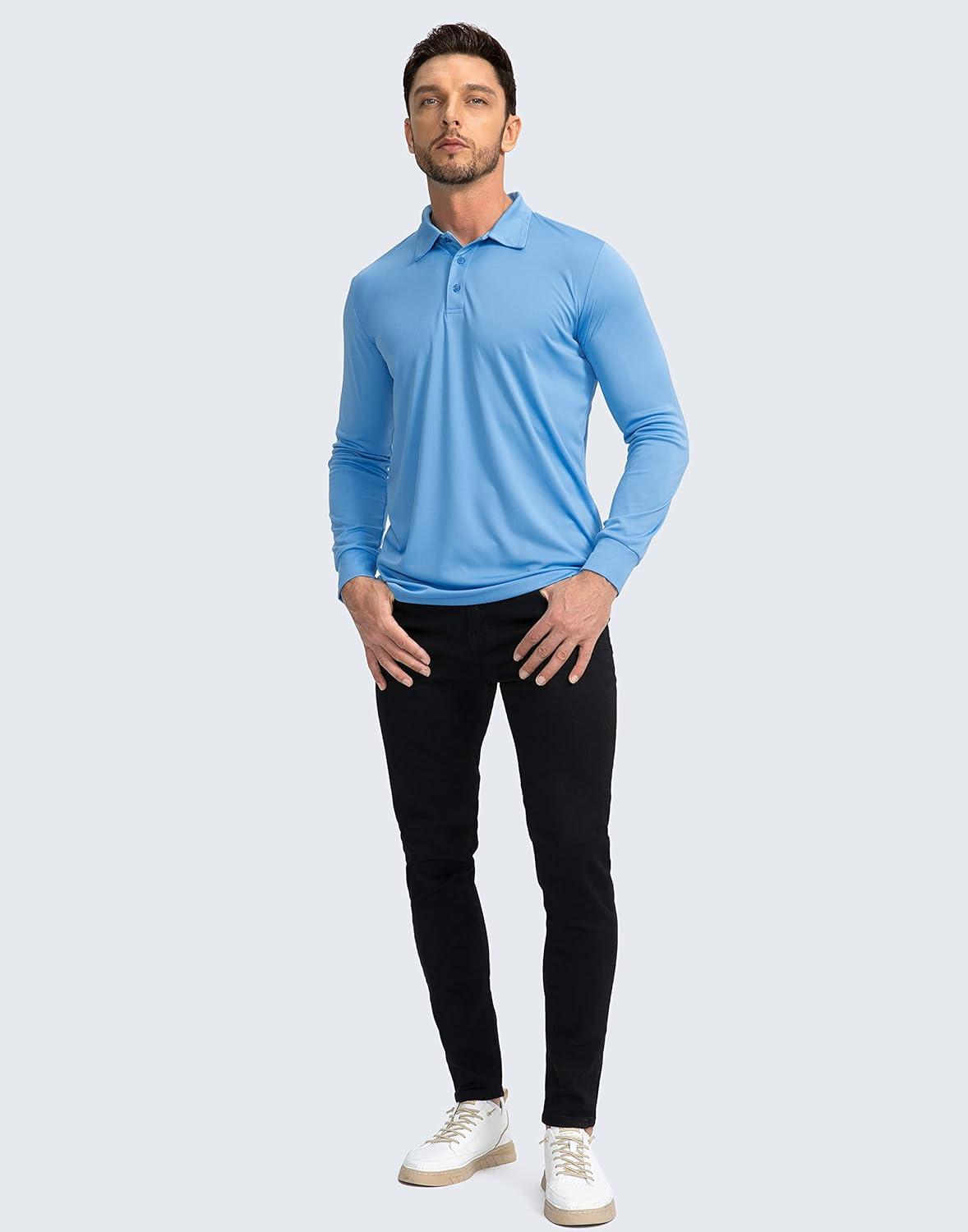 Men's Polo Shirt Long Sleeve Golf Shirts Lightweight UPF 50+ Sun Protection Cool Shirts for Men Work Fishing Outdoor(Sky Blue)
