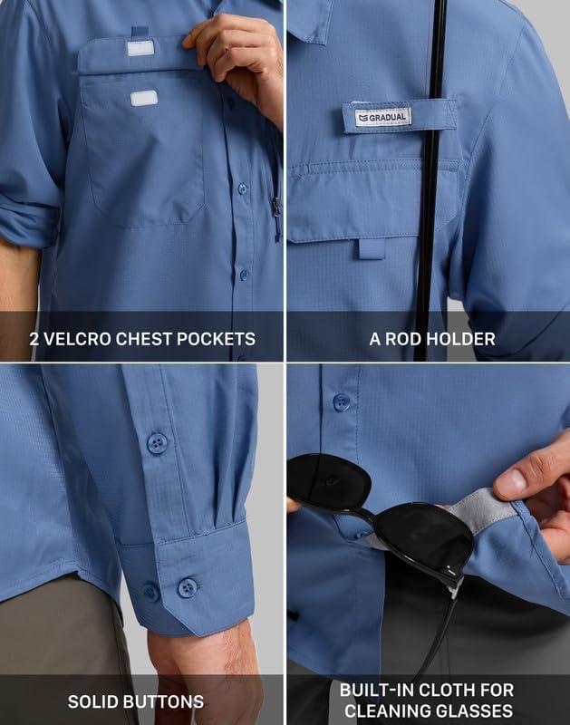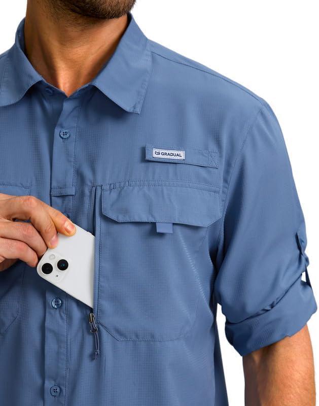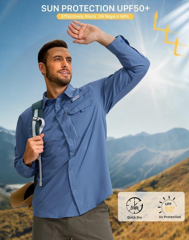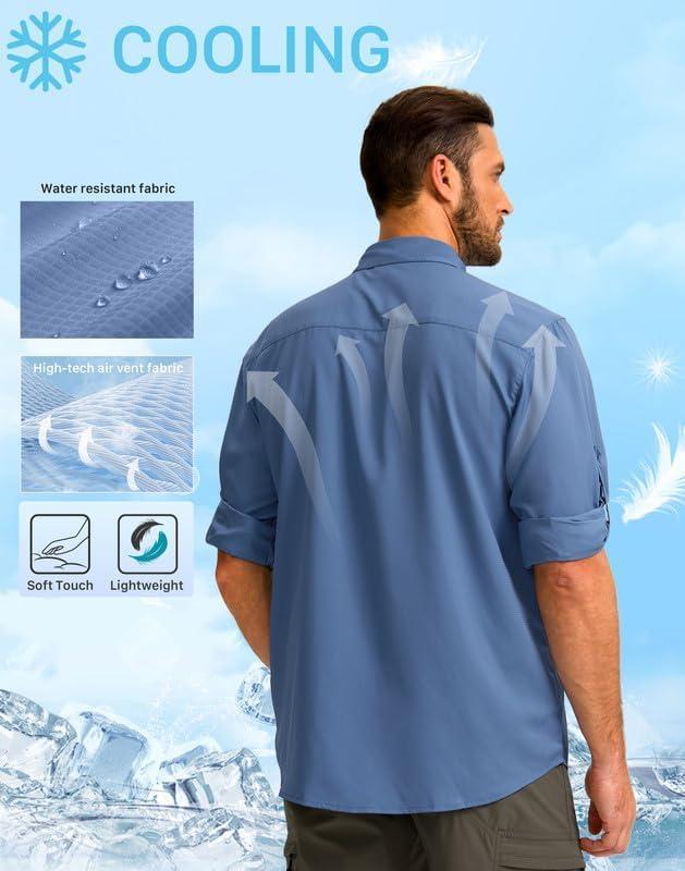 Men's Sun Protection Fishing Shirt with Zipper Pockets Long Sleeve UPF 50+ UV Cooling Shirts for Men Hiking Travel(Dusty Blue)