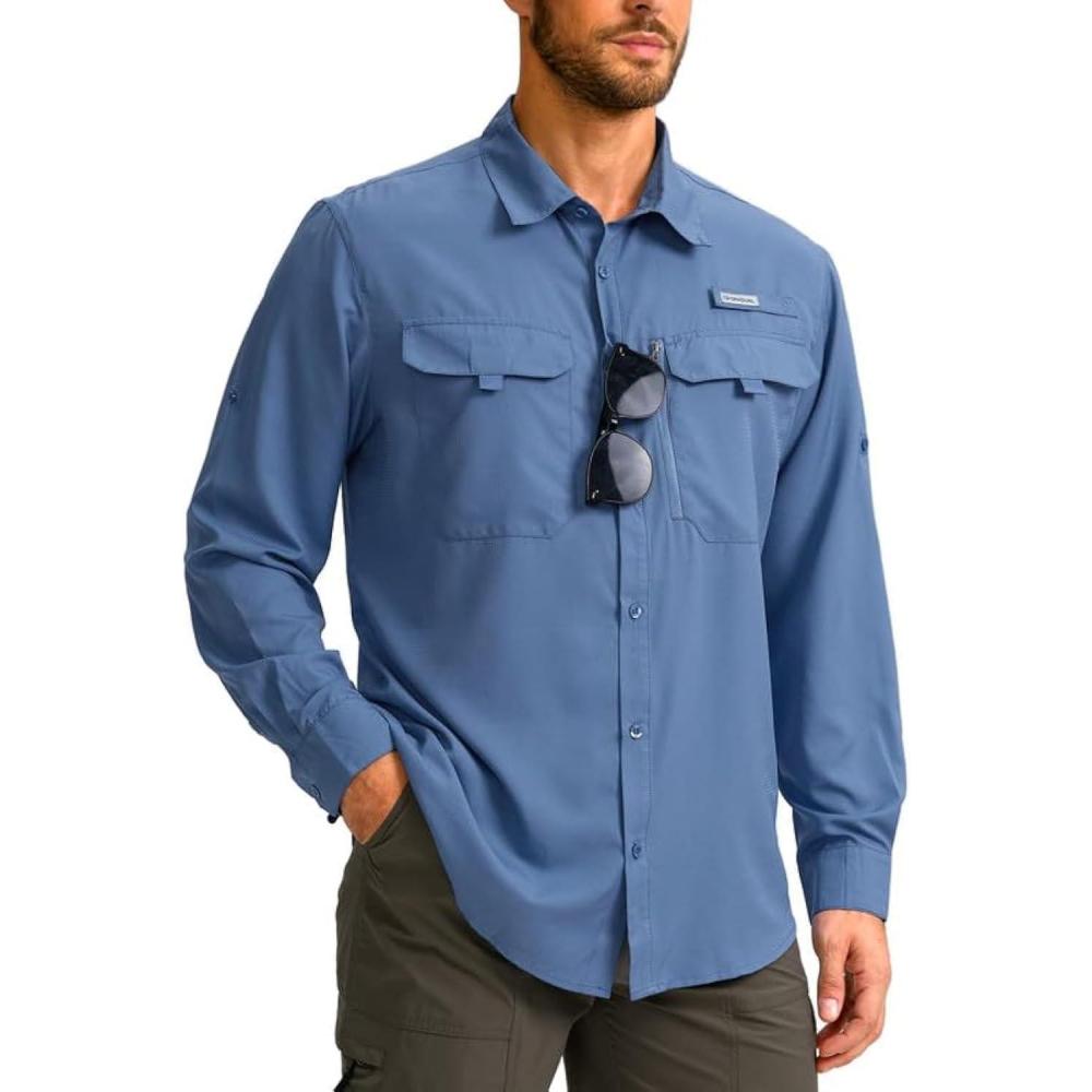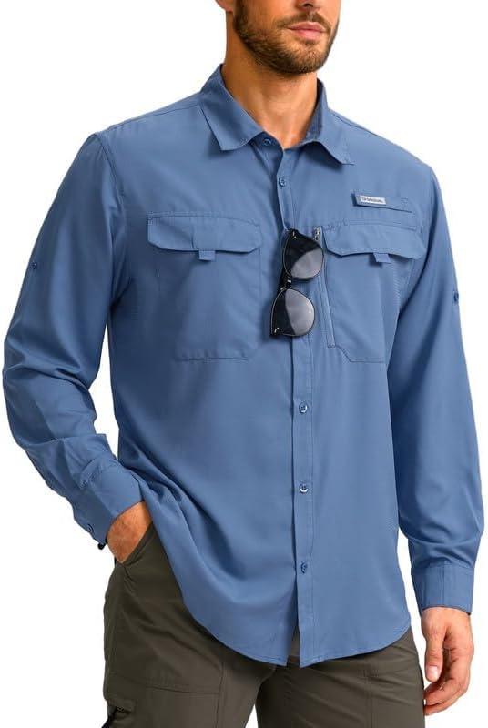 Men’s Sun Protection Fishing Shirt with Zipper Pockets Long Sleeve UPF 50+ UV Cooling Shirts for Men Hiking Travel(Dusty Blue)