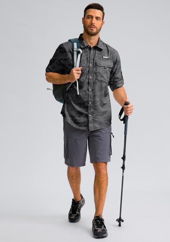 Men’s Sun Protection Fishing Shirt with Zipper Pockets Long Sleeve UPF 50+ UV Cooling Shirts for Men Hiking Travel(Grey Camo)