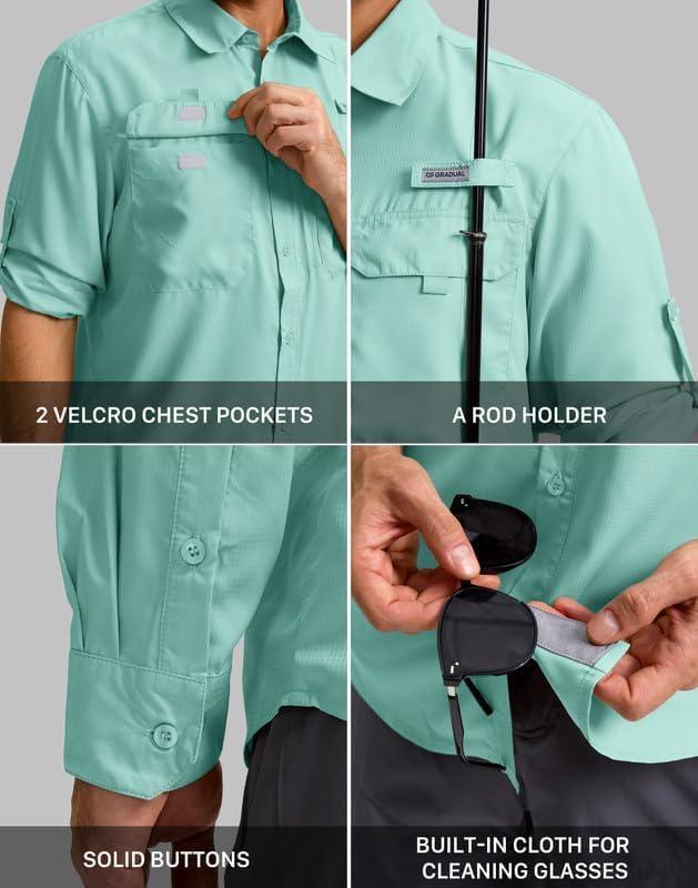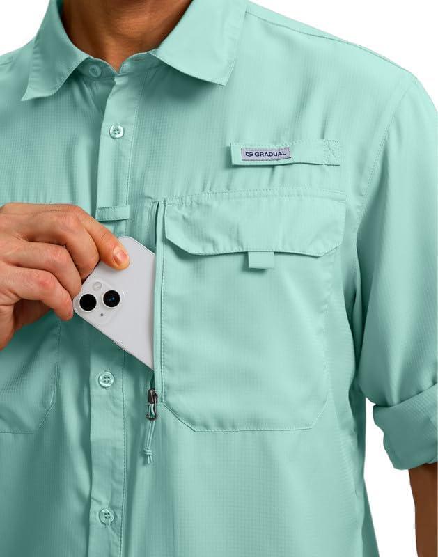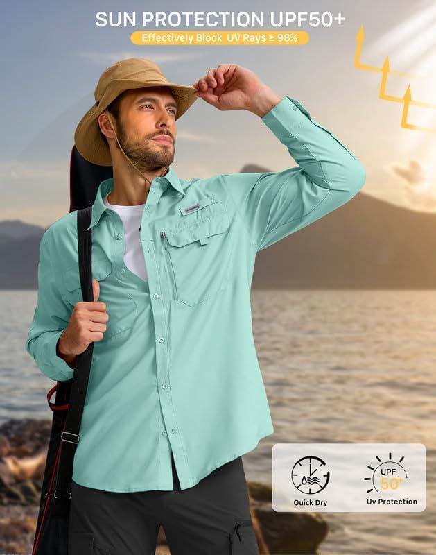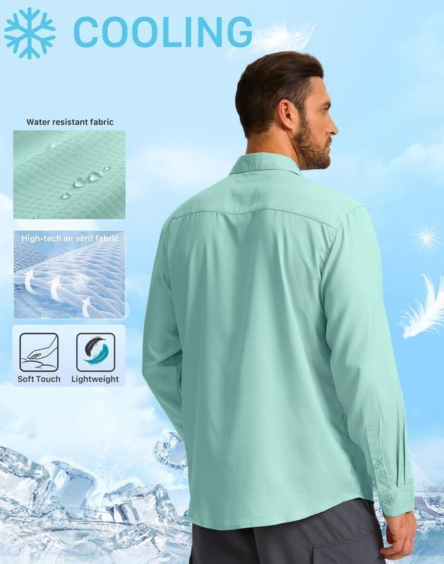 Men's Sun Protection Fishing Shirt with Zipper Pockets Long Sleeve UPF 50+ UV Cooling Shirts for Men Hiking Travel(Mint Green)