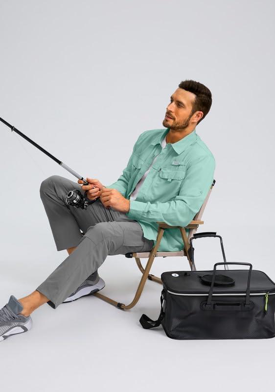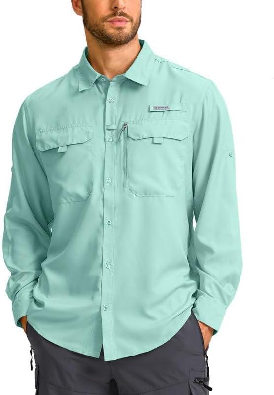 Men’s Sun Protection Fishing Shirt with Zipper Pockets Long Sleeve UPF 50+ UV Cooling Shirts for Men Hiking Travel(Mint Green)