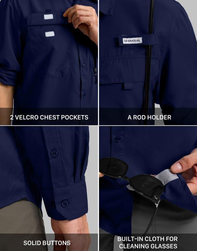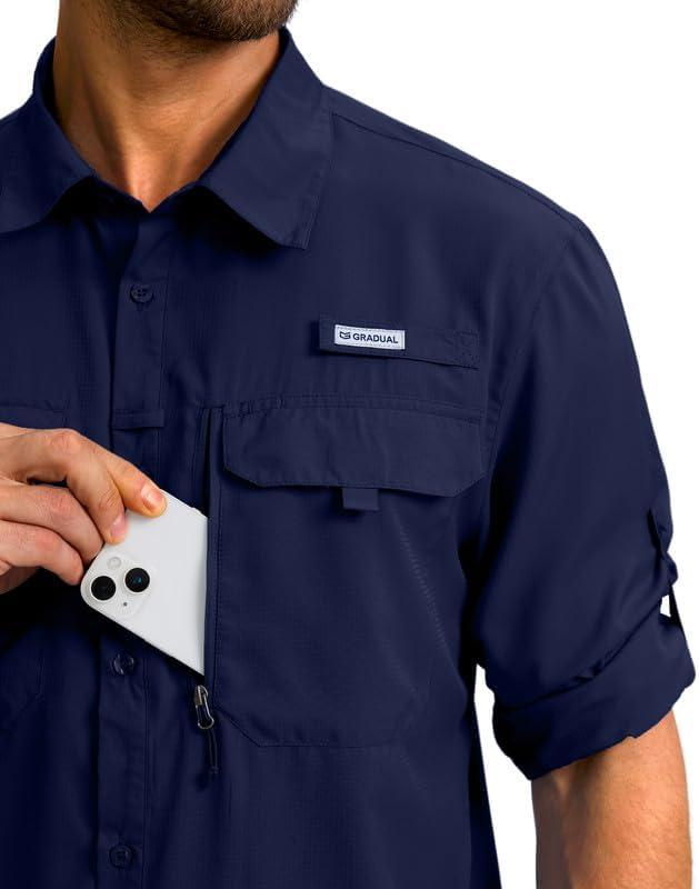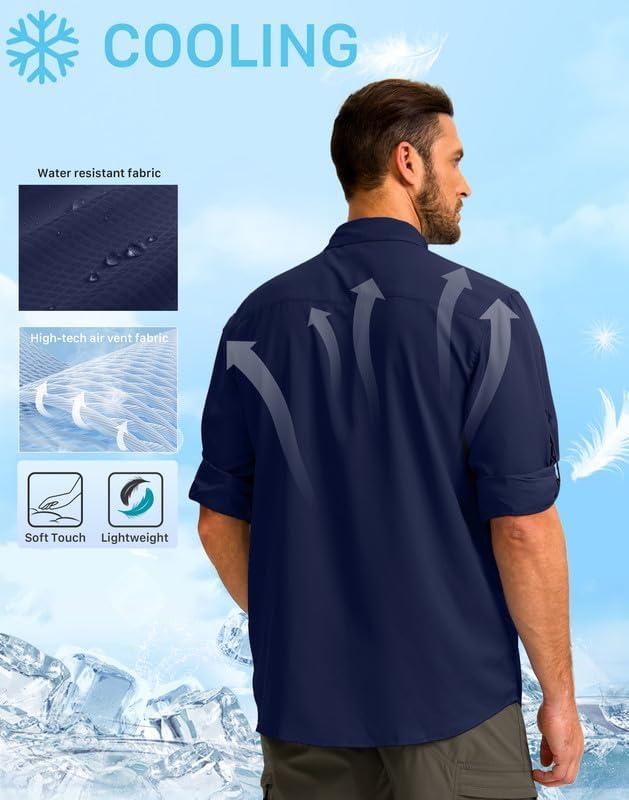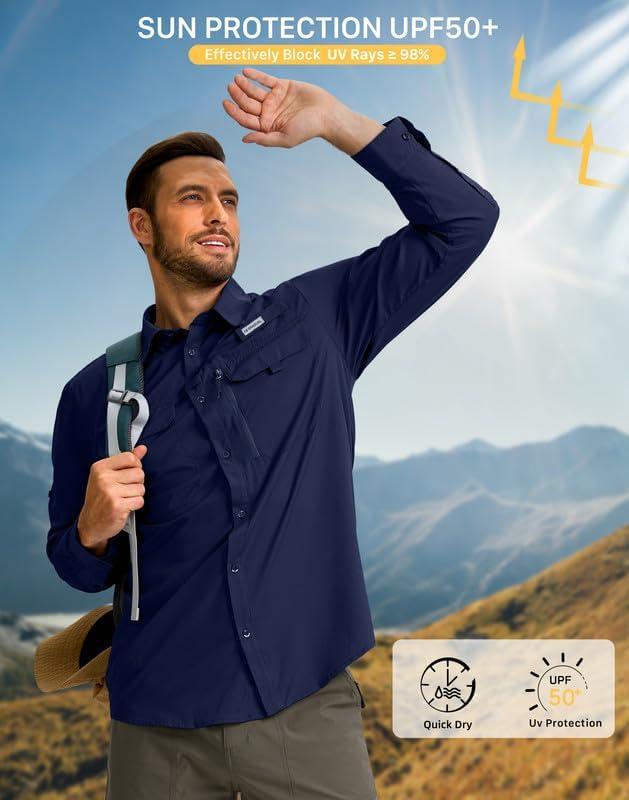 Men's Sun Protection Fishing Shirt with Zipper Pockets Long Sleeve UPF 50+ UV Cooling Shirts for Men Hiking Travel(Navy)
