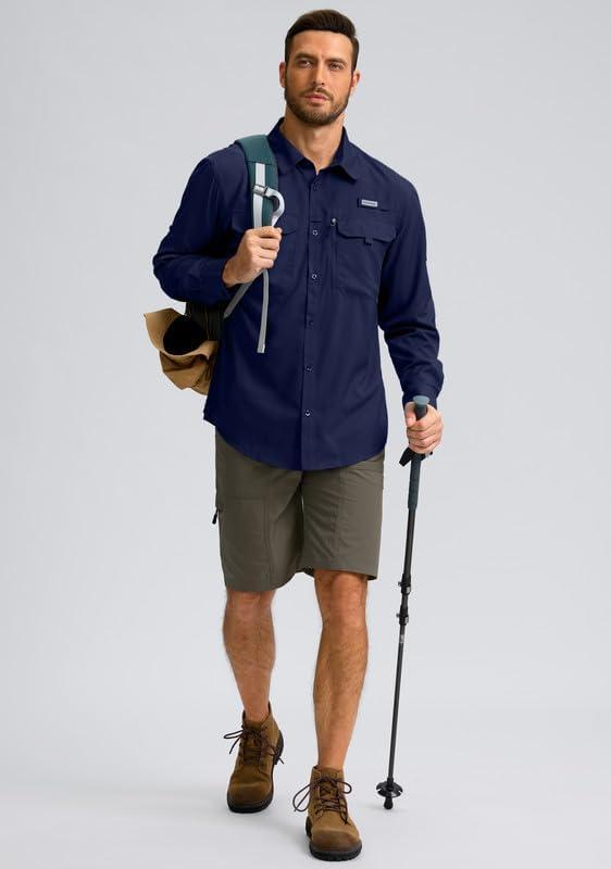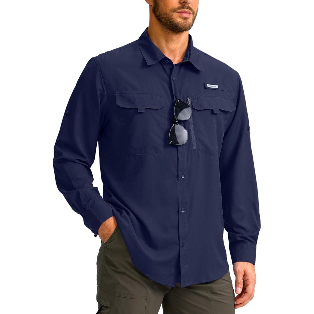 Men’s Sun Protection Fishing Shirt with Zipper Pockets Long Sleeve UPF 50+ UV Cooling Shirts for Men Hiking Travel(Navy)
