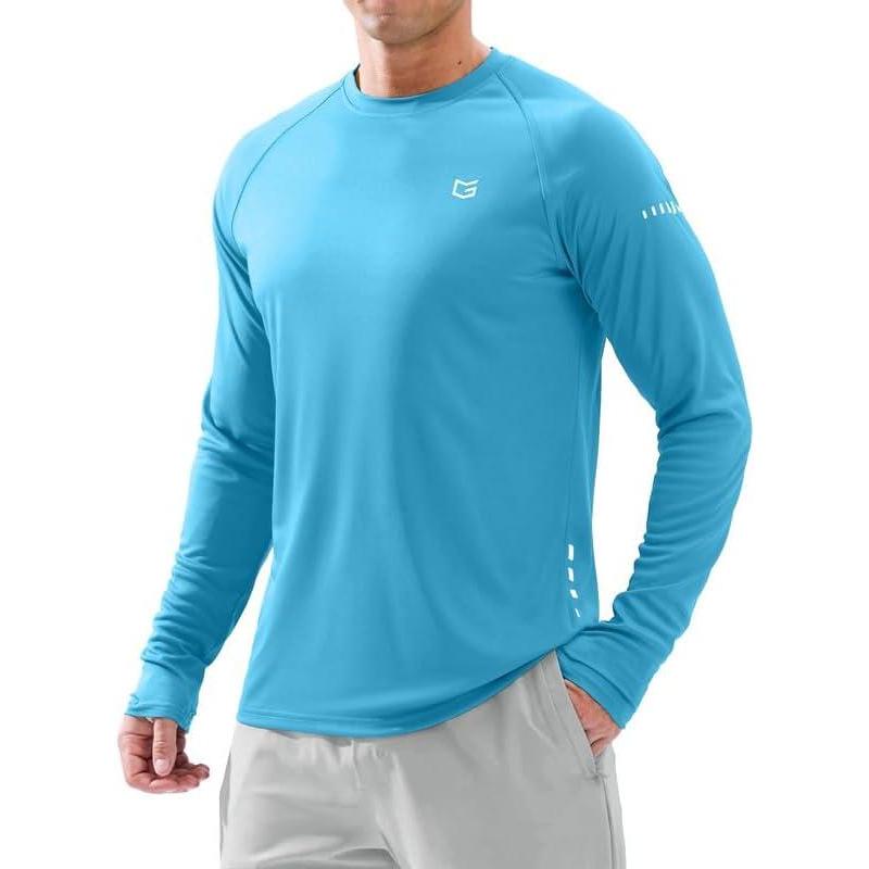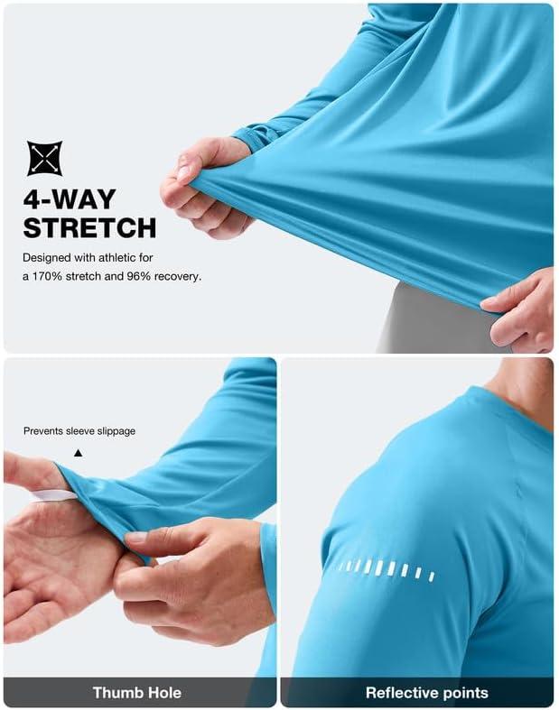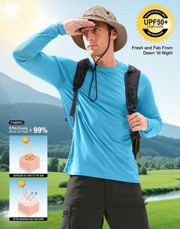 Men’s Sun Protection Long Sleeve Shirts UPF 50+ Rash Guard for Men SPF UV Fishing Hiking Running Workout Athletic Shirt(Blue)