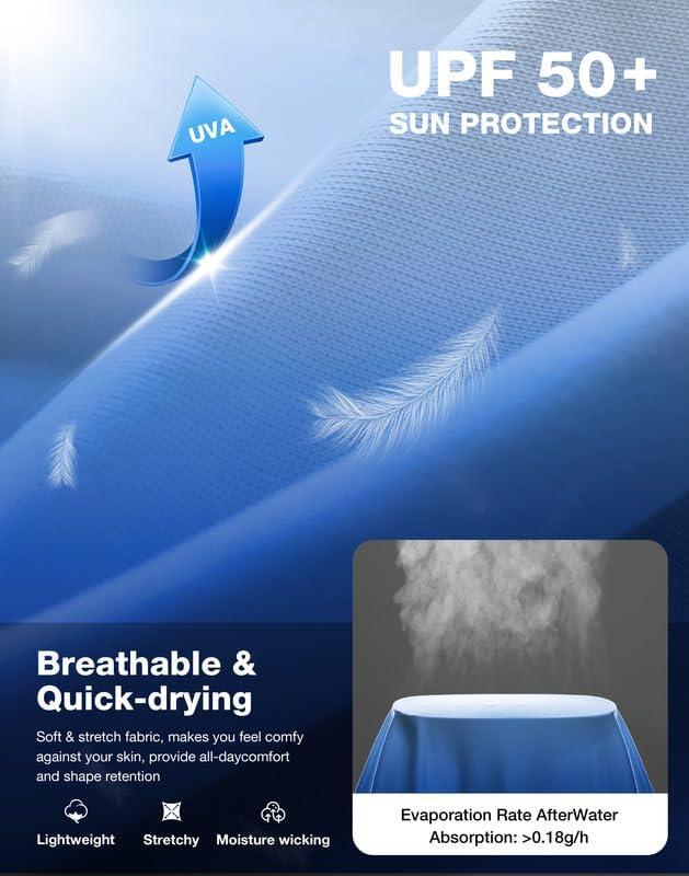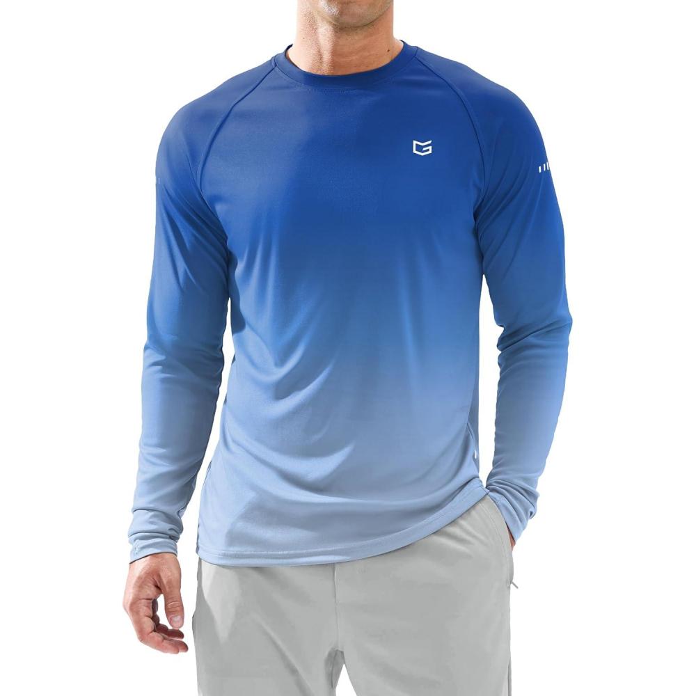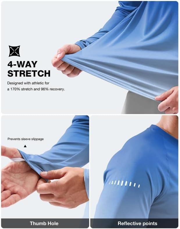 Men's Sun Protection Long Sleeve Shirts UPF 50+ Rash Guard for Men SPF UV Fishing Hiking Running Workout Athletic Shirt(Gradient Blue White)