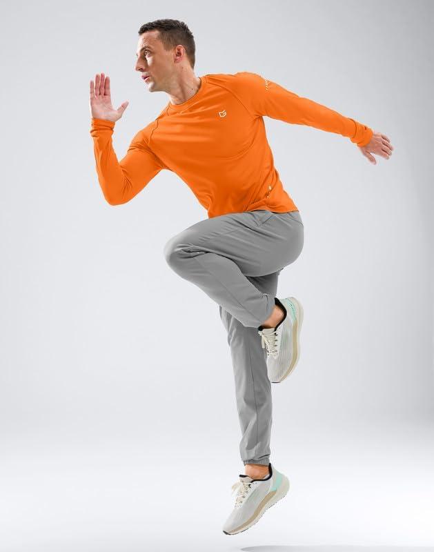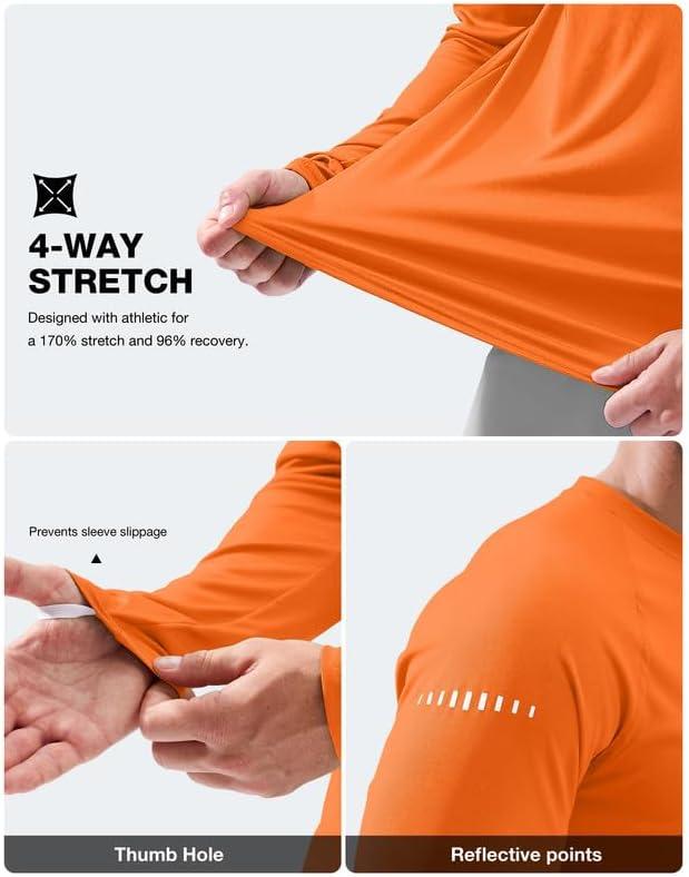 Men’s Sun Protection Long Sleeve Shirts UPF 50+ Rash Guard for Men SPF UV Fishing Hiking Running Workout Athletic Shirt(Orange)