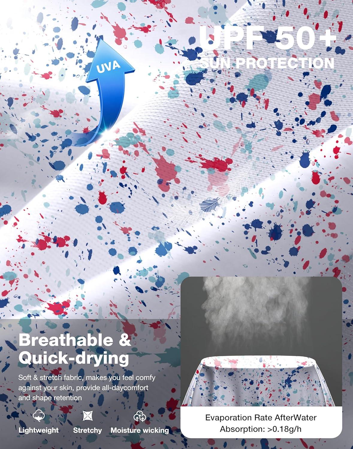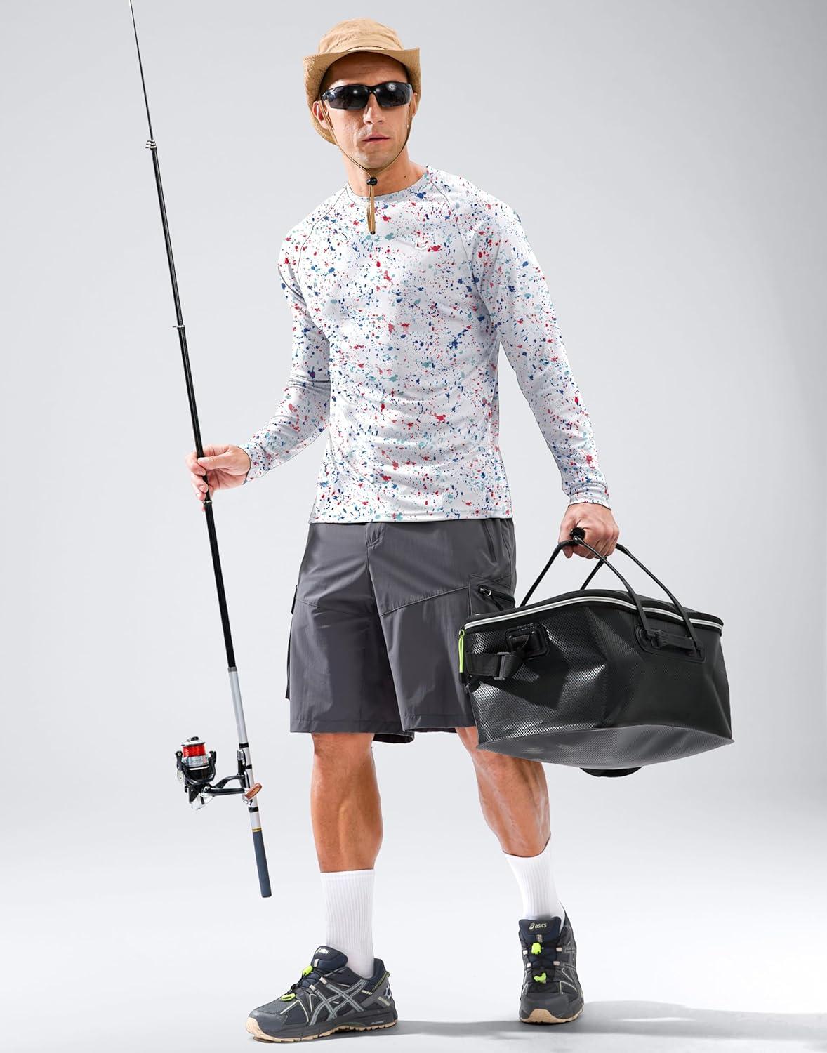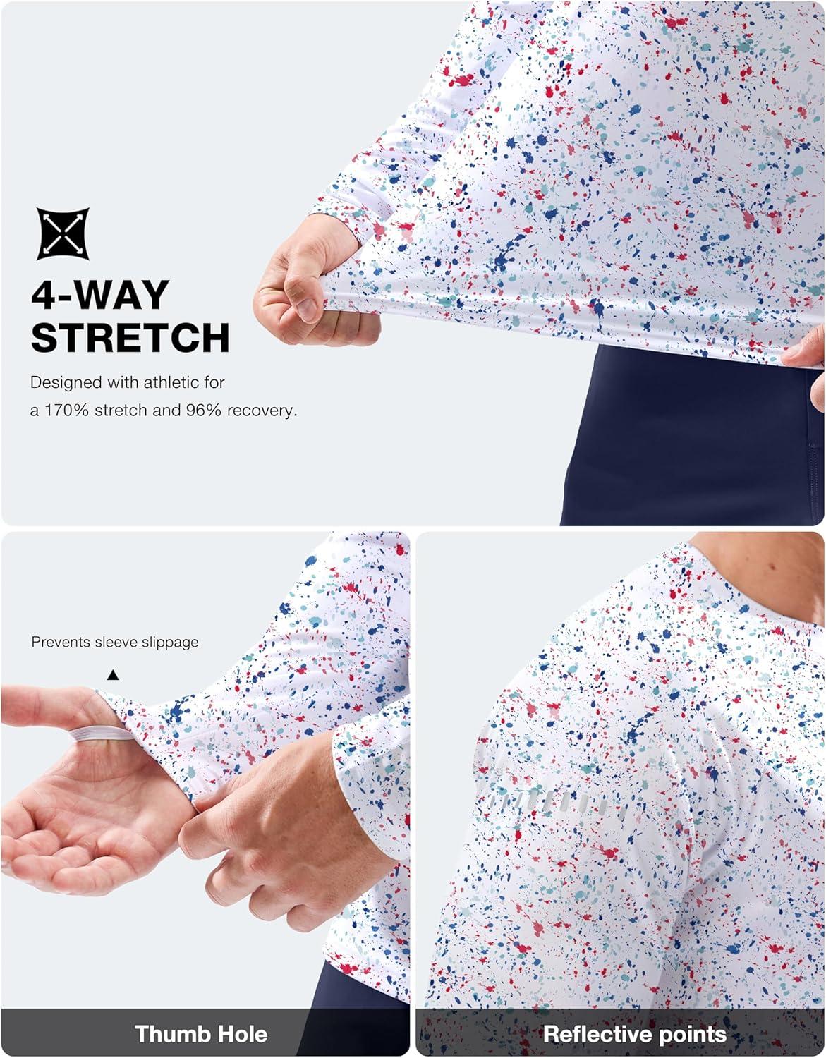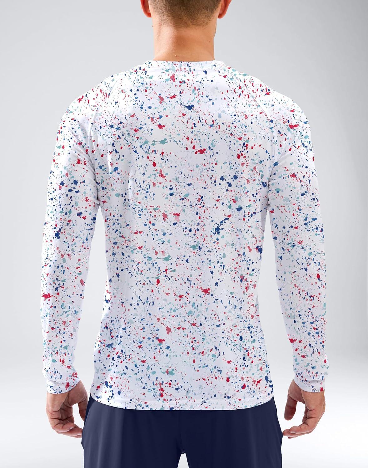 Men’s Sun Protection Long Sleeve Shirts UPF 50+ Rash Guard for Men SPF UV Fishing Hiking Running Workout Athletic Shirt(White Colored Dots)