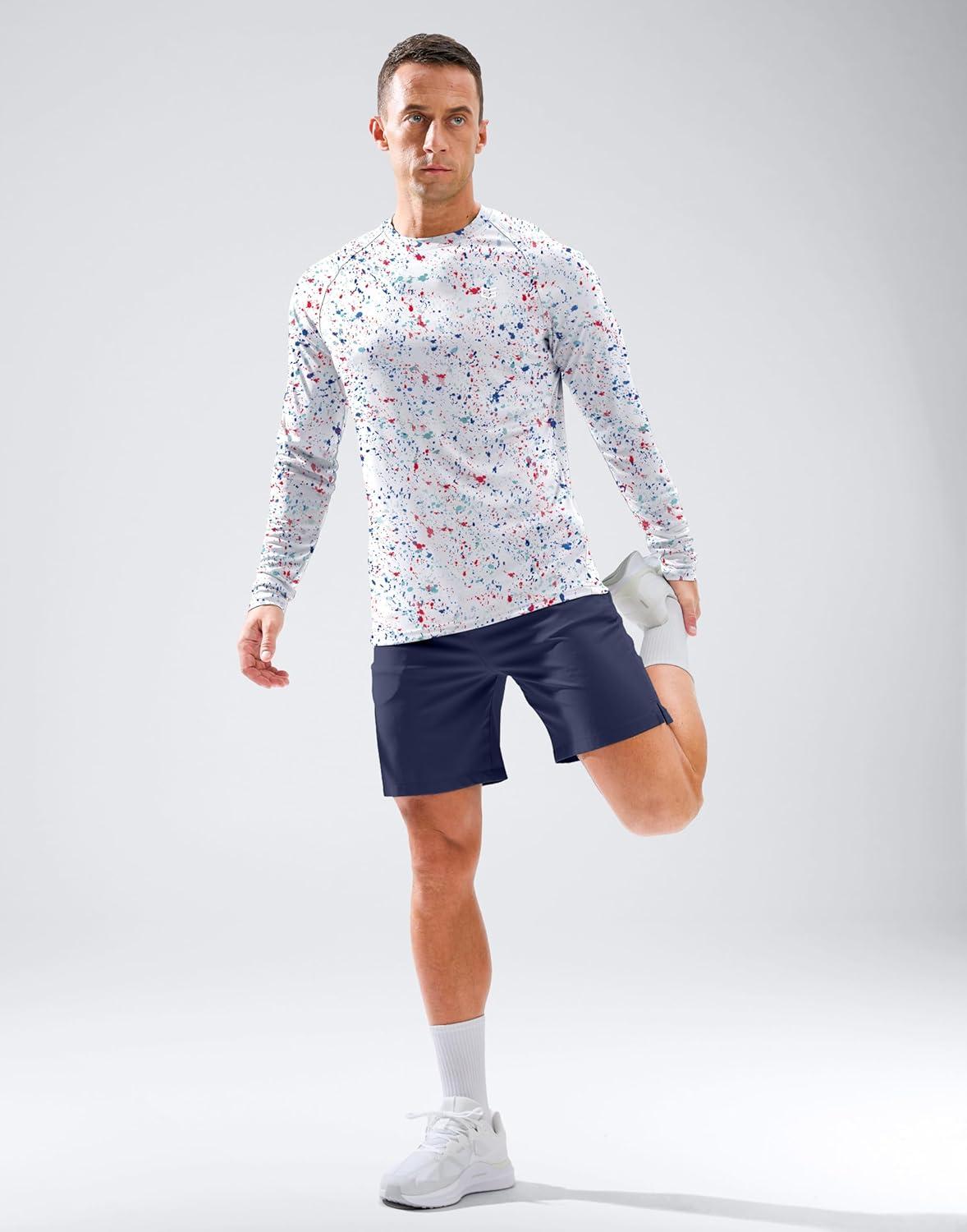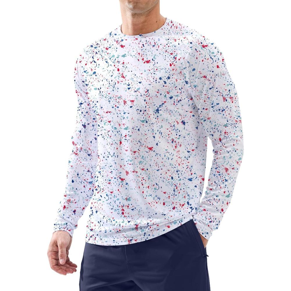 Men's Sun Protection Long Sleeve Shirts UPF 50+ Rash Guard for Men SPF UV Fishing Hiking Running Workout Athletic Shirt(White Colored Dots)