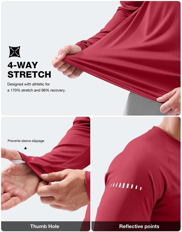 Men’s Sun Protection Long Sleeve Shirts UPF 50+(Dark Red)