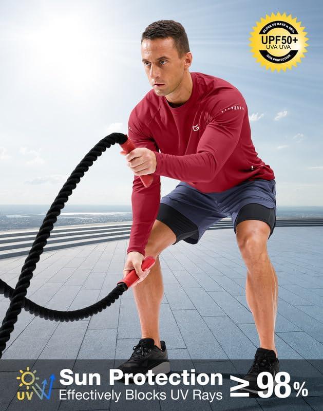 Men's Sun Protection Long Sleeve Shirts UPF 50+(Dark Red)
