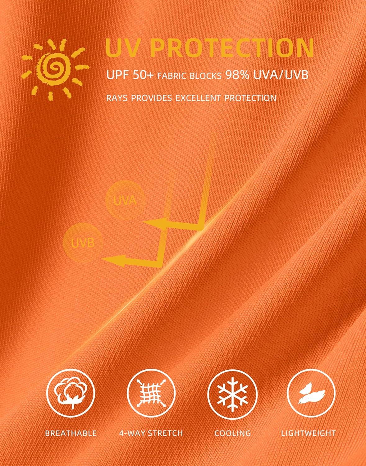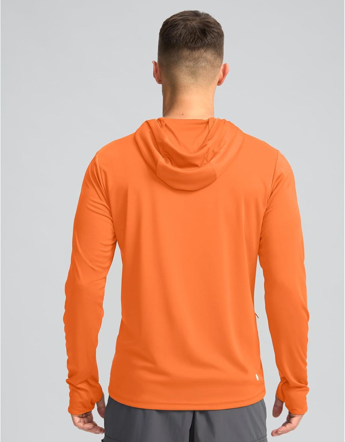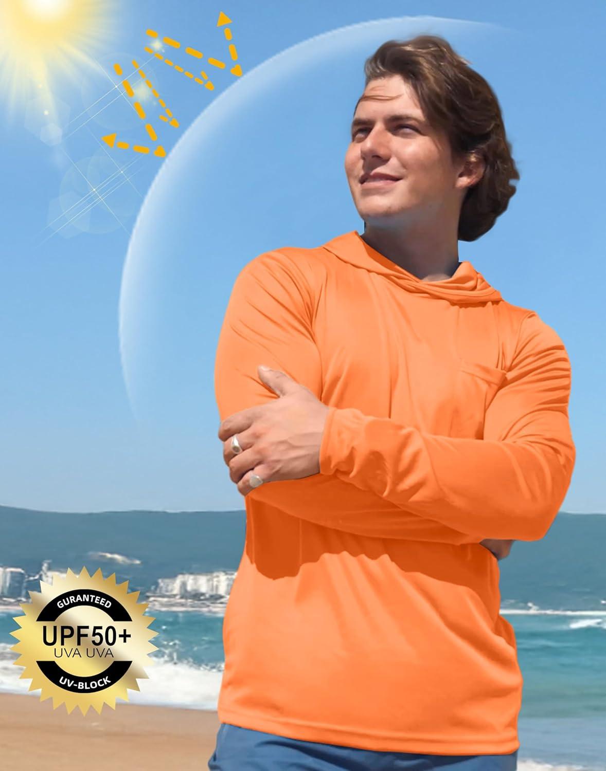 Men's Sun Protection Shirts UPF 50+ Long Sleeve Hoodie with 2 Pockets UV SPF Fishing Hiking Rash Guard Shirts(Orange)