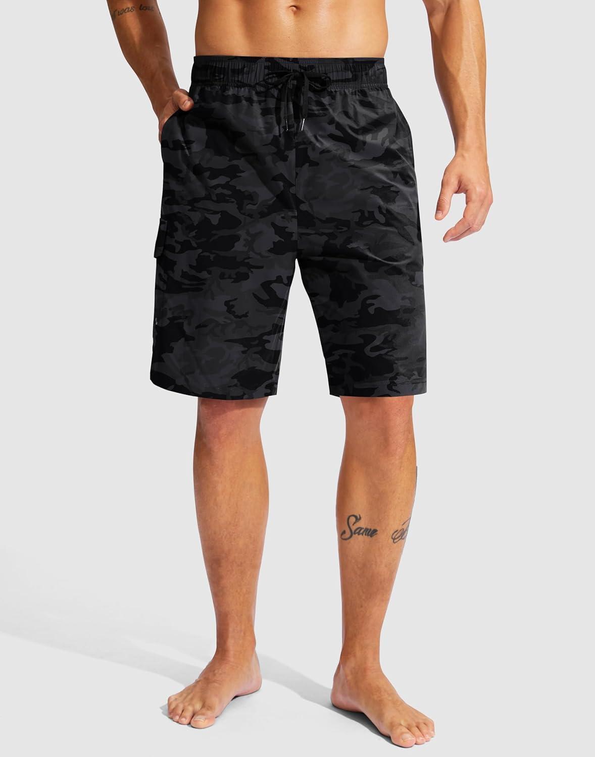 Men’s Swim Trunks No Liner 9″ Board Shorts Quick Dry Bathing Suit Swimming Beach Shorts for Men with 3 Pockets(Grey Camo)
