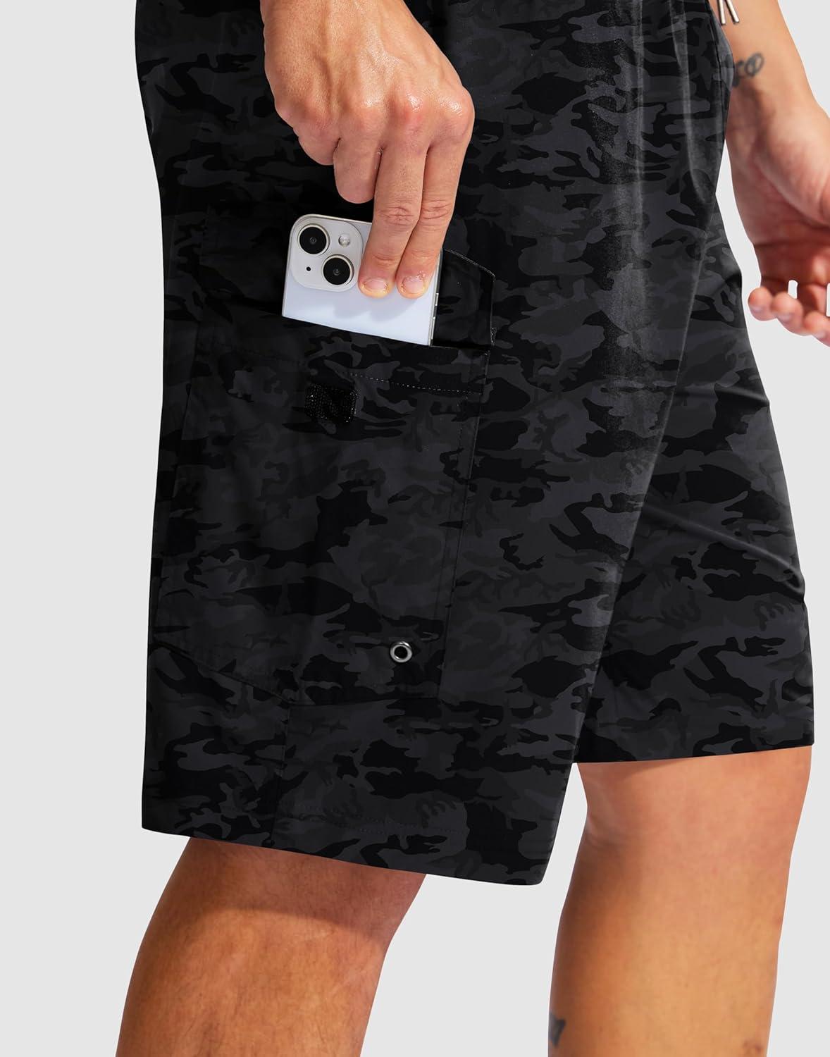 imageMens Swim Trunks No Liner 9 Board Shorts Quick Dry Bathing Suit Swimming Beach Shorts for Men with 3 PocketsGrey Camo