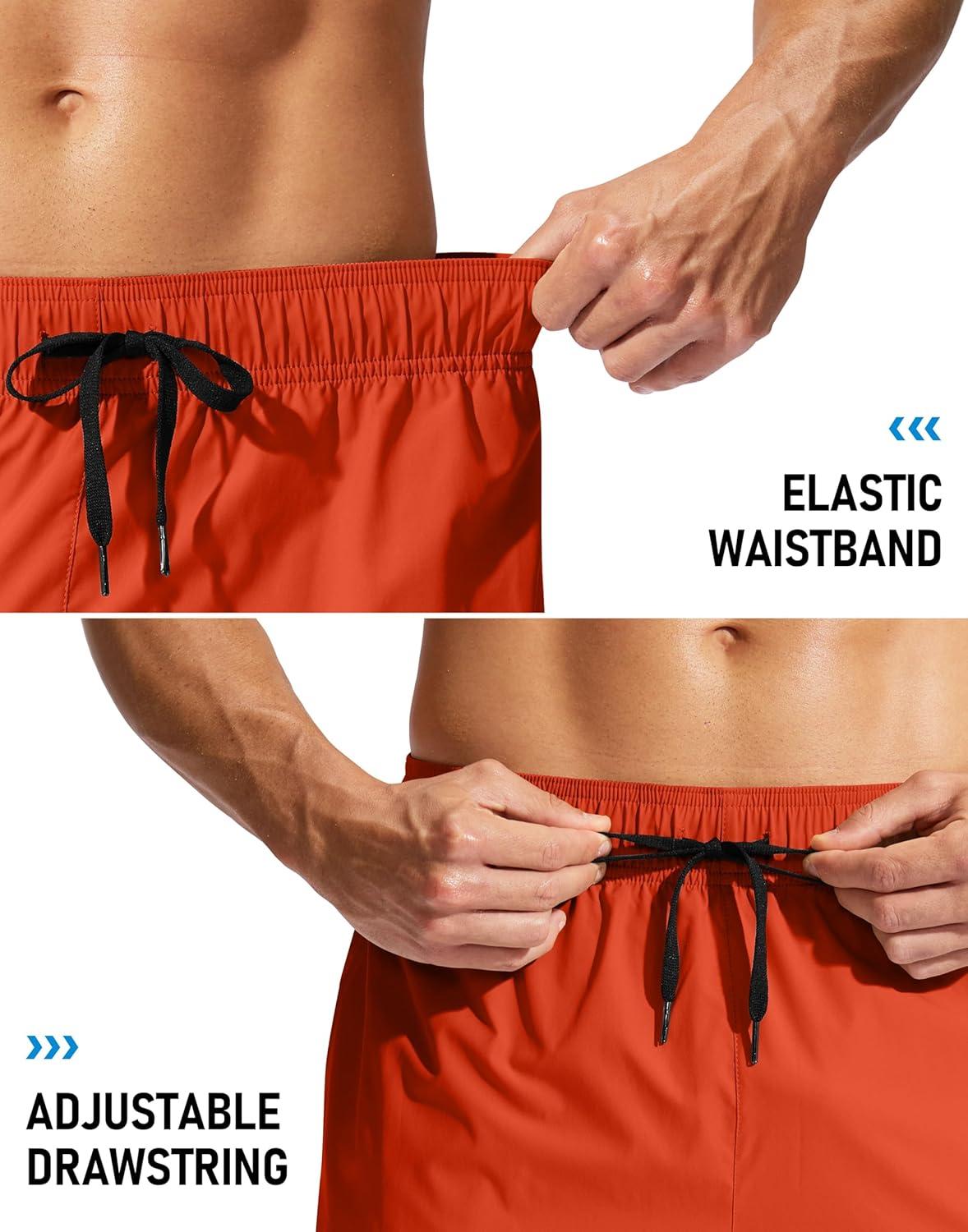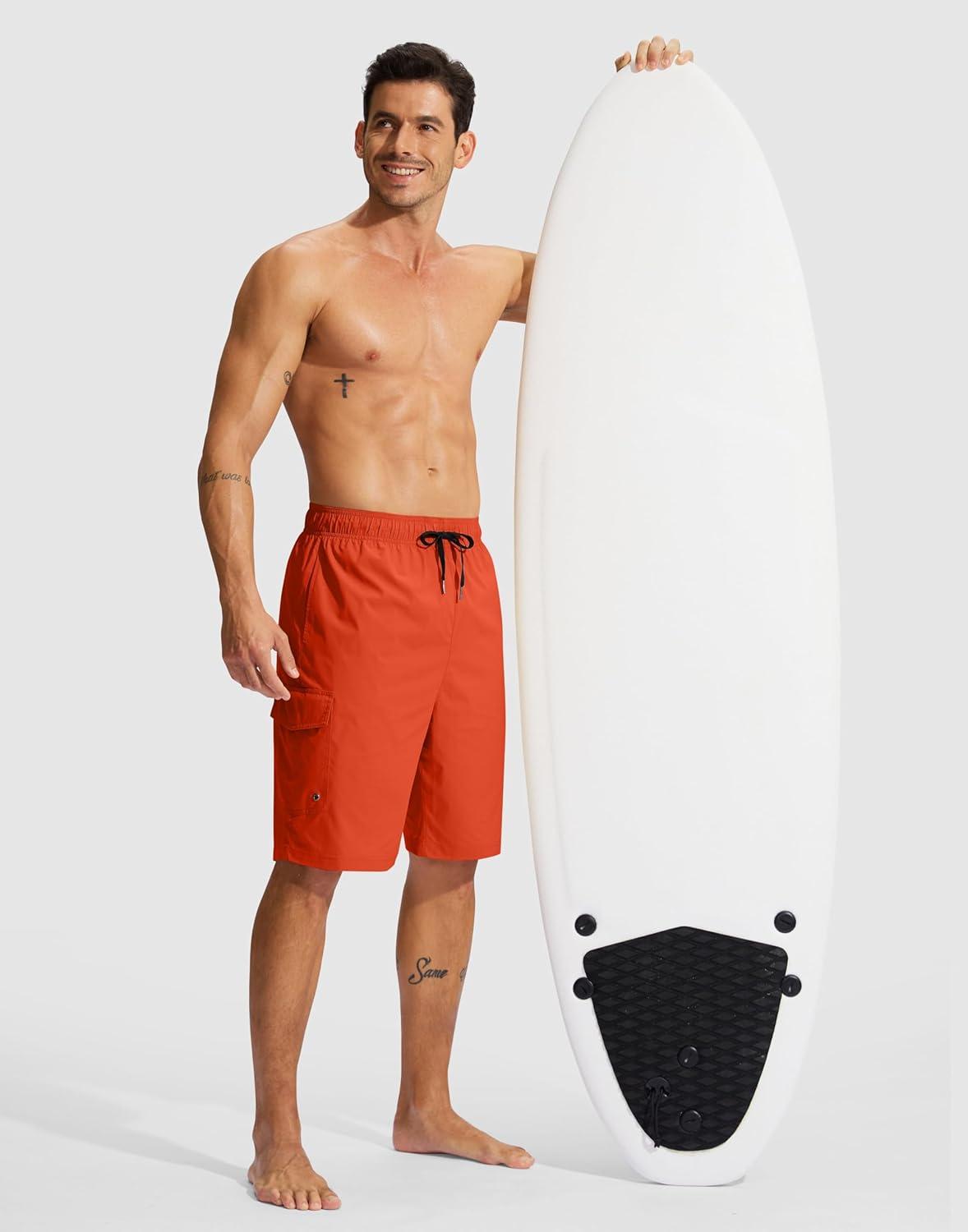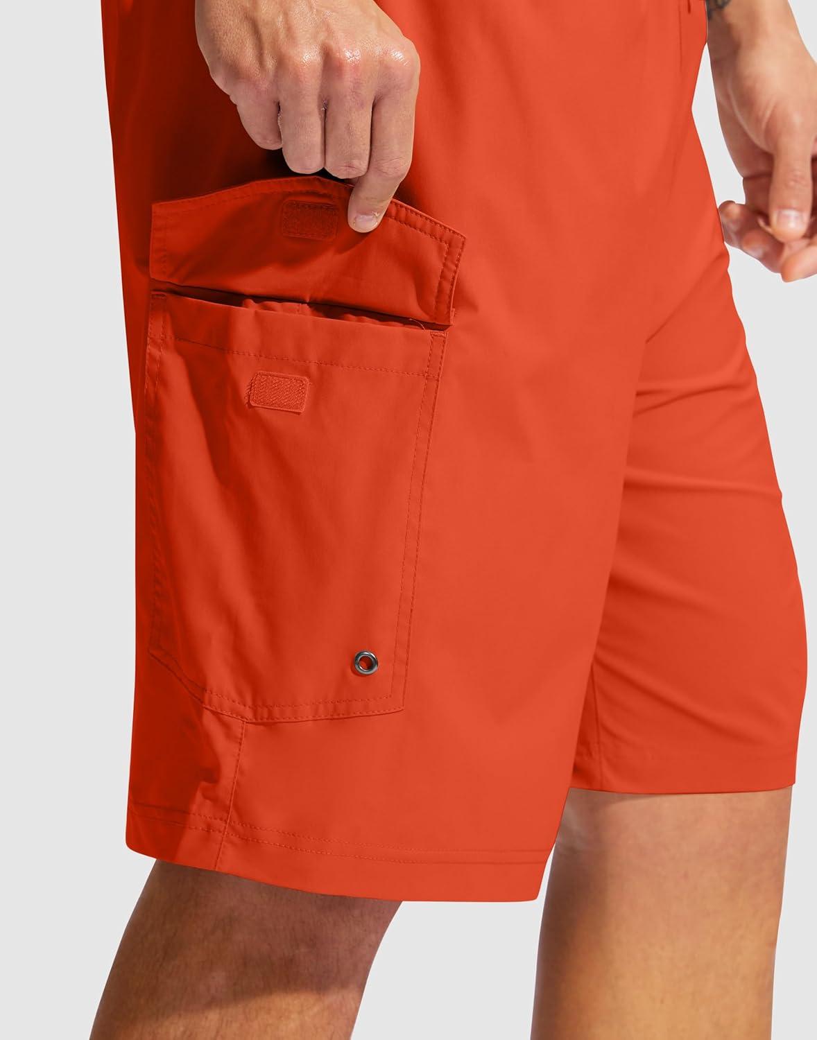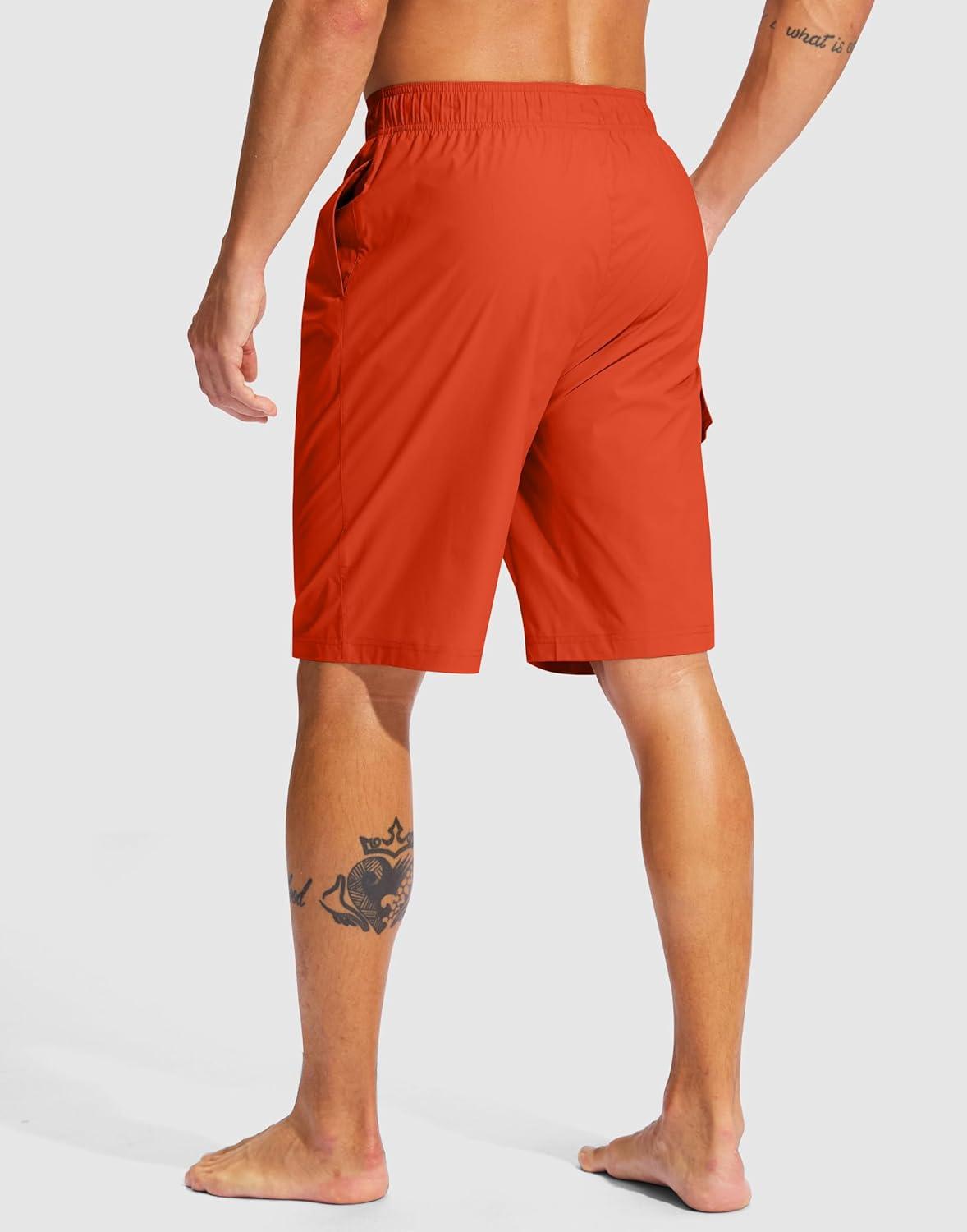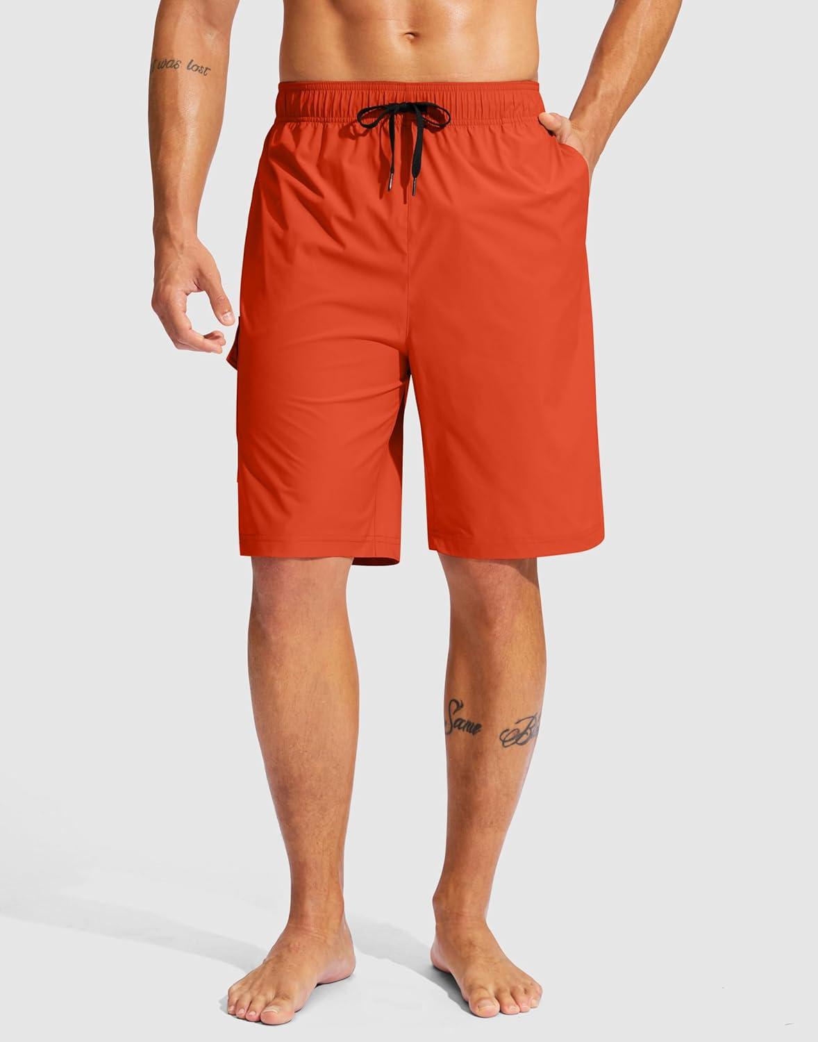 Men’s Swim Trunks No Liner 9″ Board Shorts Quick Dry Bathing Suit Swimming Beach Shorts for Men with 3 Pockets(Orange)