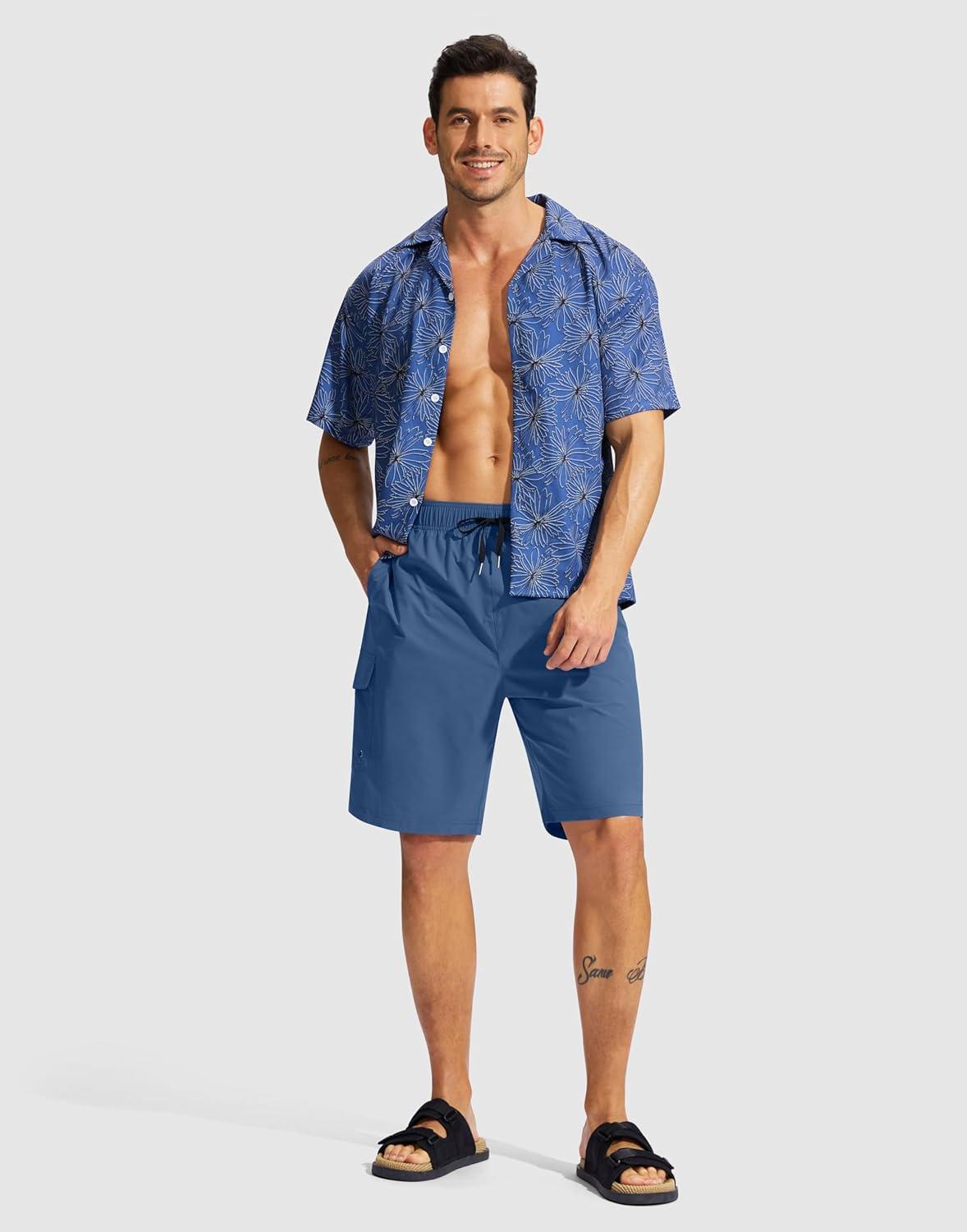 Men’s Swim Trunks No Liner 9″ Board Shorts Quick Dry Bathing Suit Swimming Beach Shorts for Men with 3 Pockets(Royal Blue)