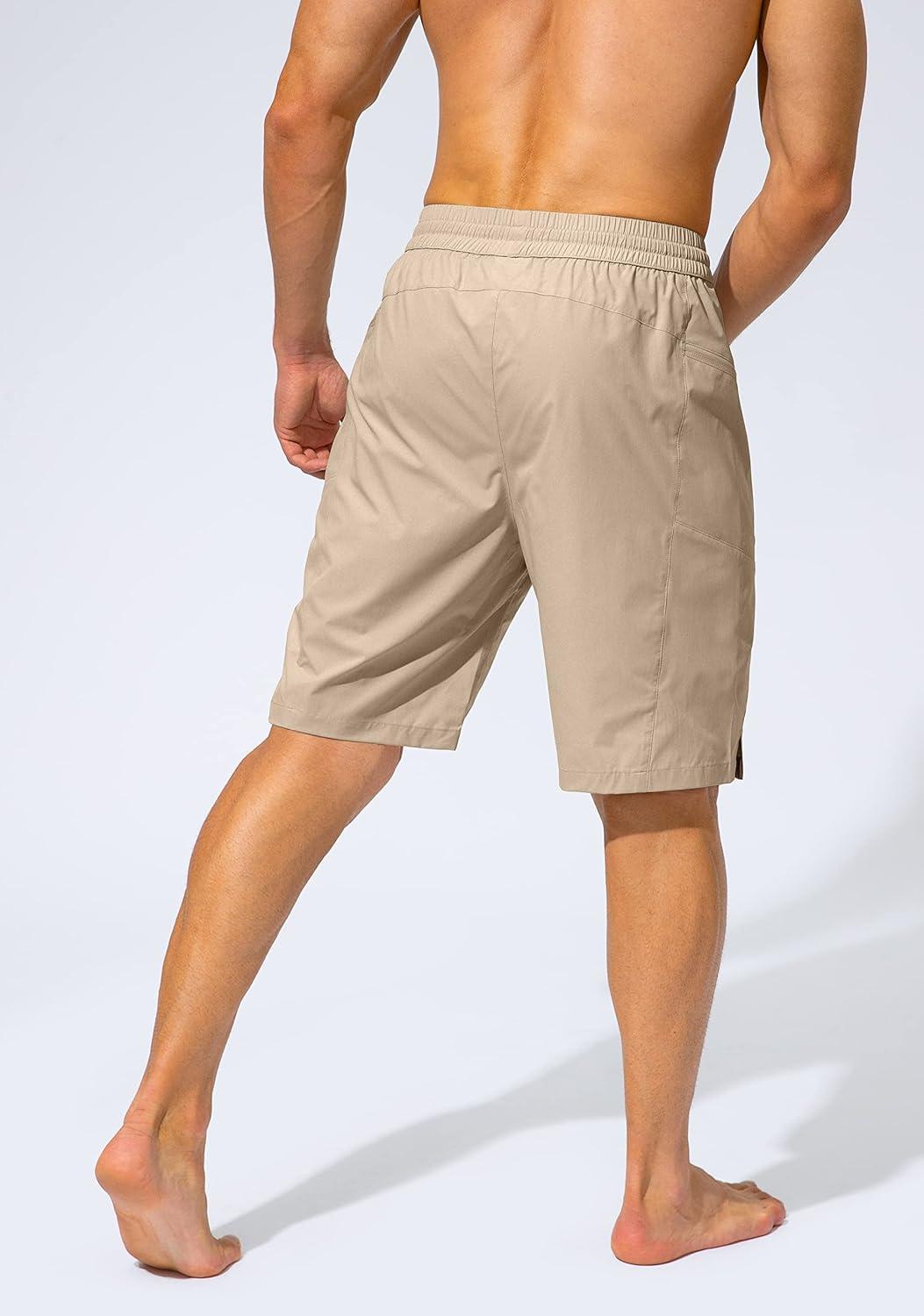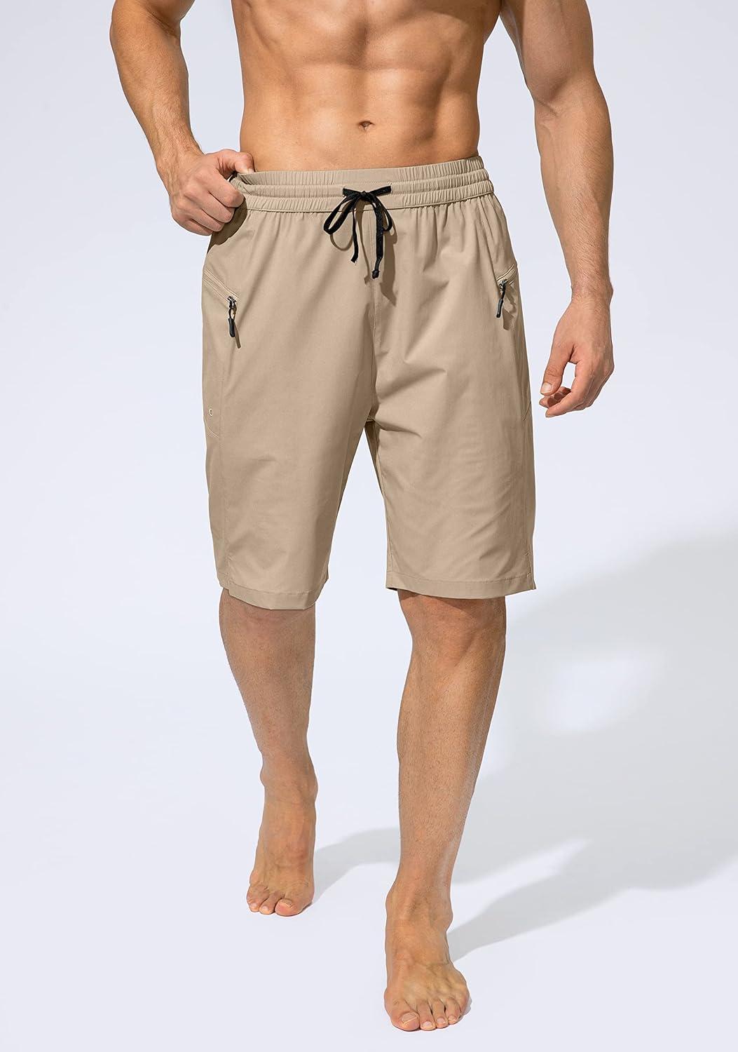 Men’s Swim Trunks Quick Dry Board Shorts with Zipper Pockets Beach Shorts Bathing Suits for Men – No Mesh Liner(Khaki)