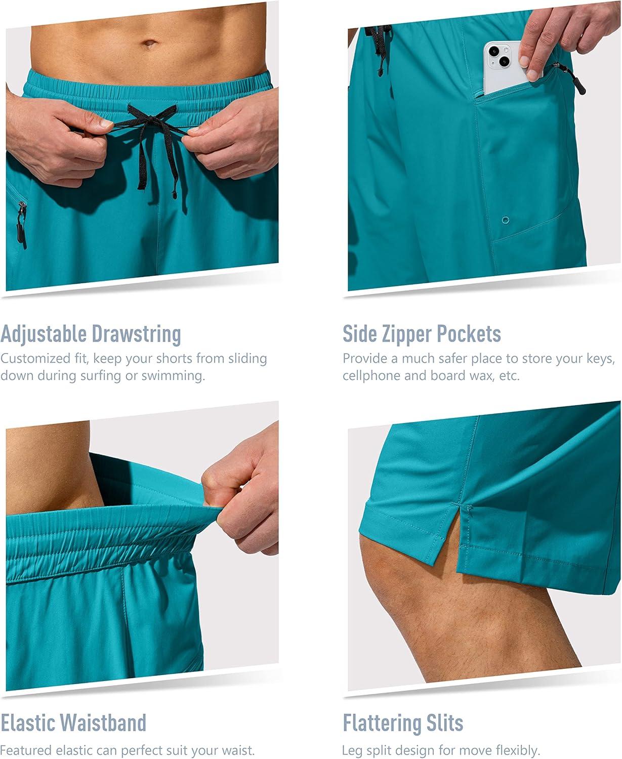 Men’s Swim Trunks Quick Dry Board Shorts with Zipper Pockets Beach Shorts Bathing Suits for Men – No Mesh Liner(Lake Green)