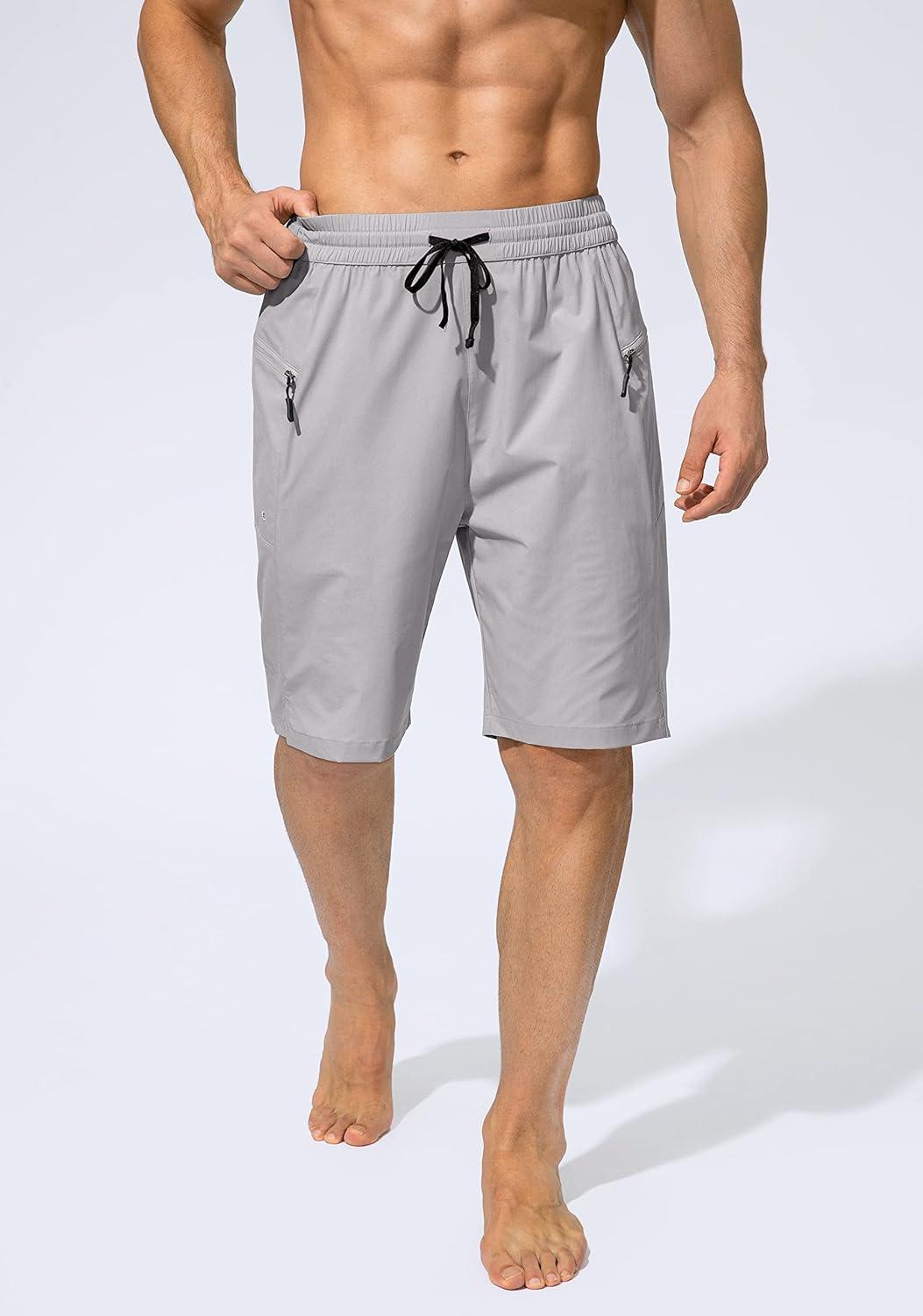 Men’s Swim Trunks Quick Dry Board Shorts with Zipper Pockets Beach Shorts Bathing Suits for Men – No Mesh Liner(Light Grey)