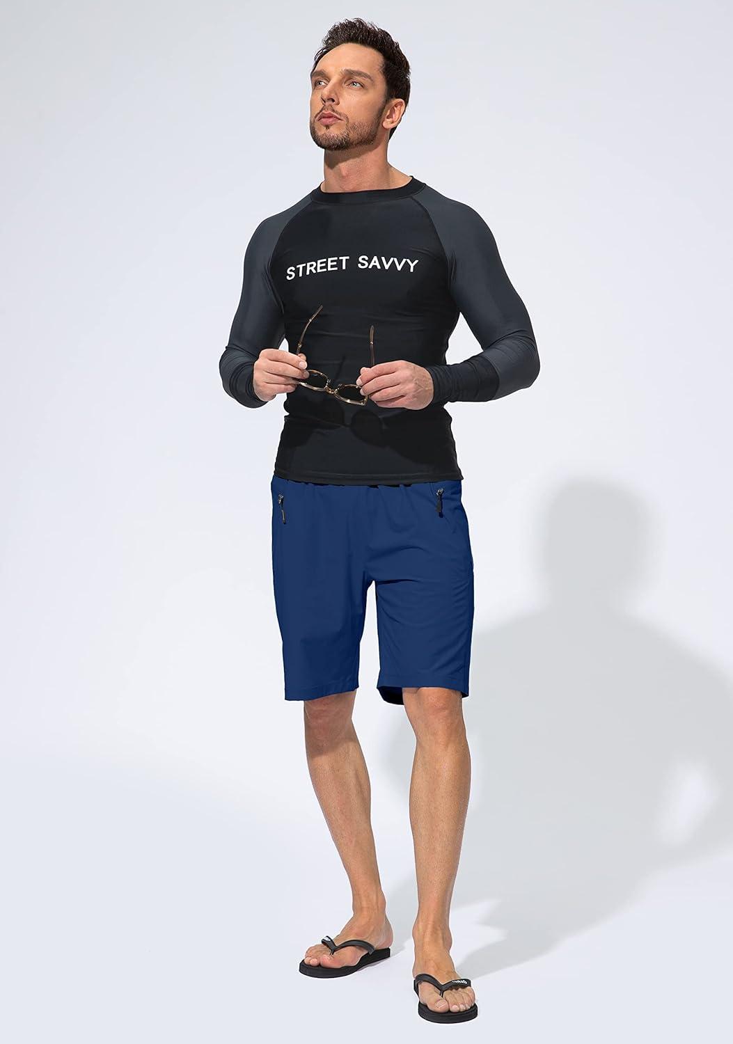Men’s Swim Trunks Quick Dry Board Shorts with Zipper Pockets Beach Shorts Bathing Suits for Men – No Mesh Liner(Navy)