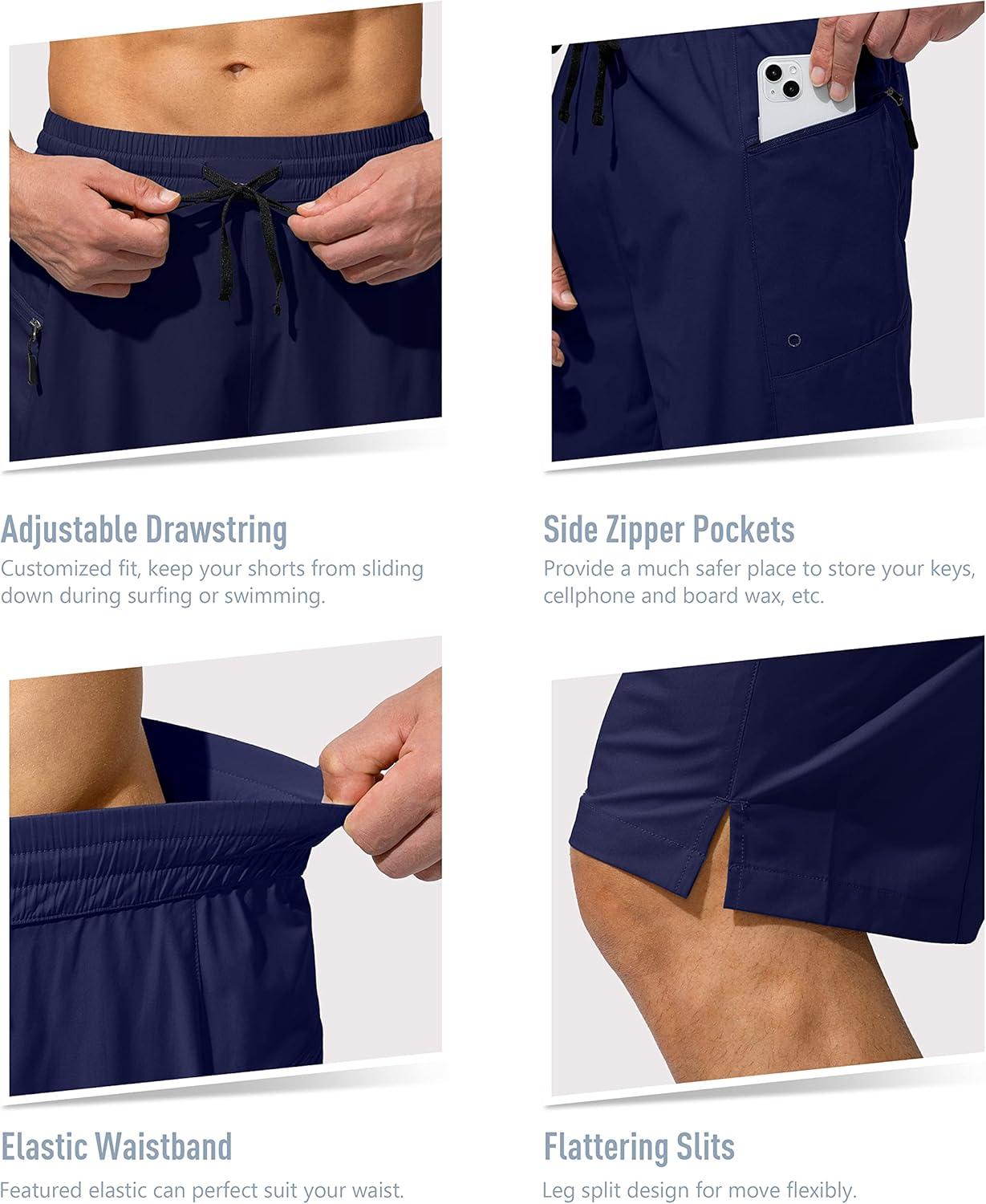Men’s Swim Trunks Quick Dry Board Shorts with Zipper Pockets Beach Shorts Bathing Suits for Men – No Mesh Liner(Navy)