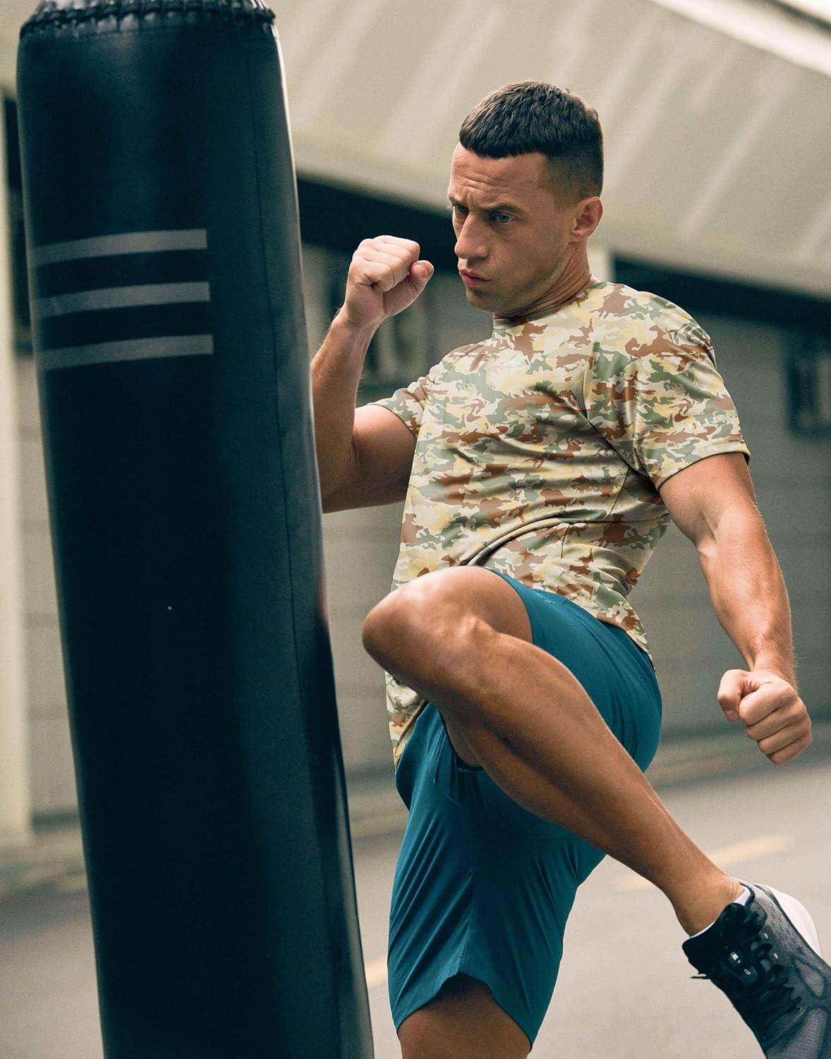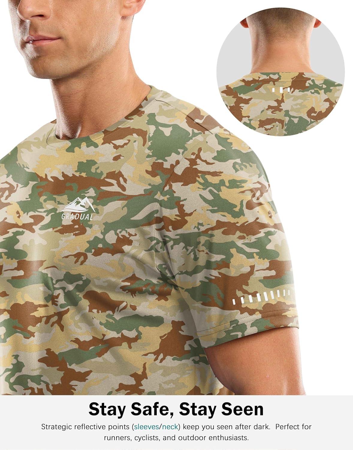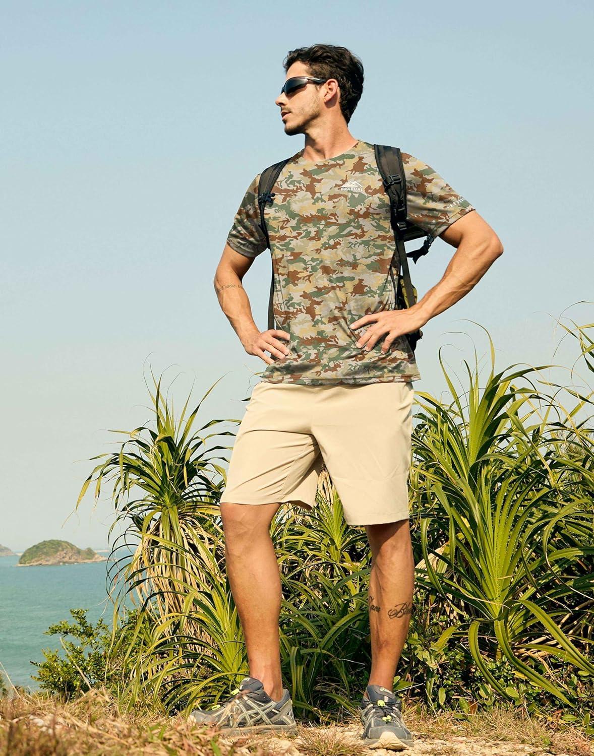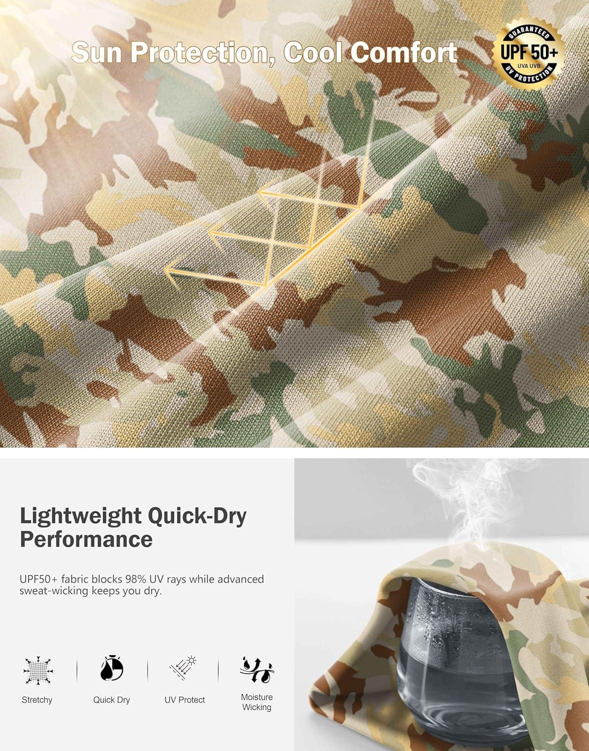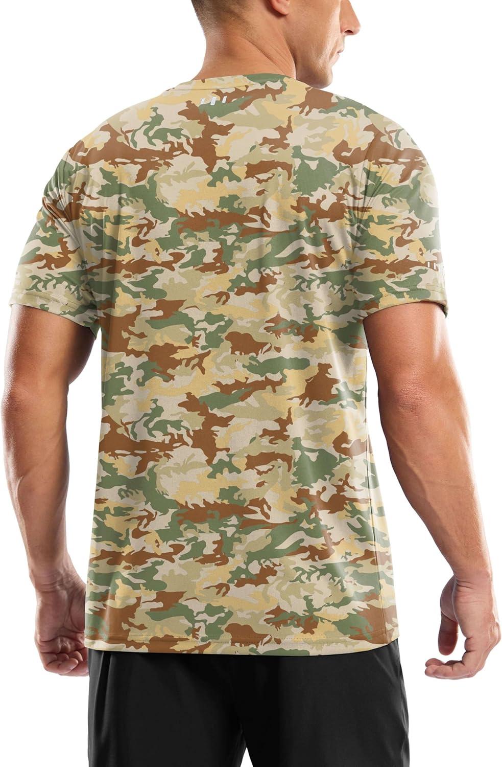 Men’s UPF 50+ Sun Protection Dry Fit Workout T-Shirts Rash Guard Swim Shirts Moisture Wicking Tee for Athletic, Beach, Hiking(Brown Camo)