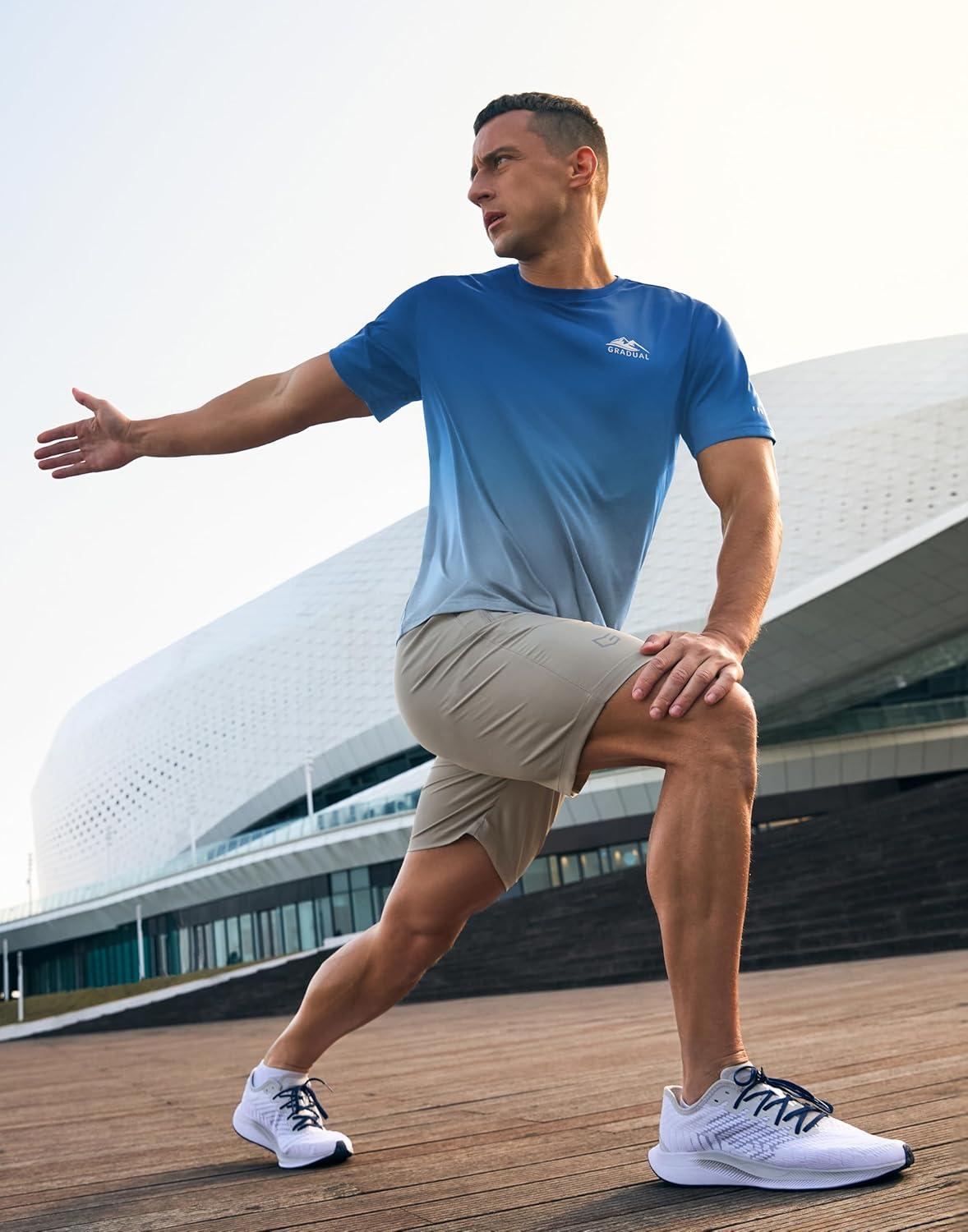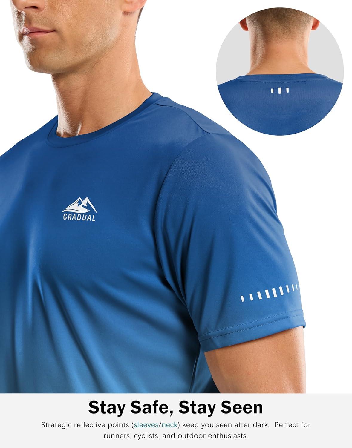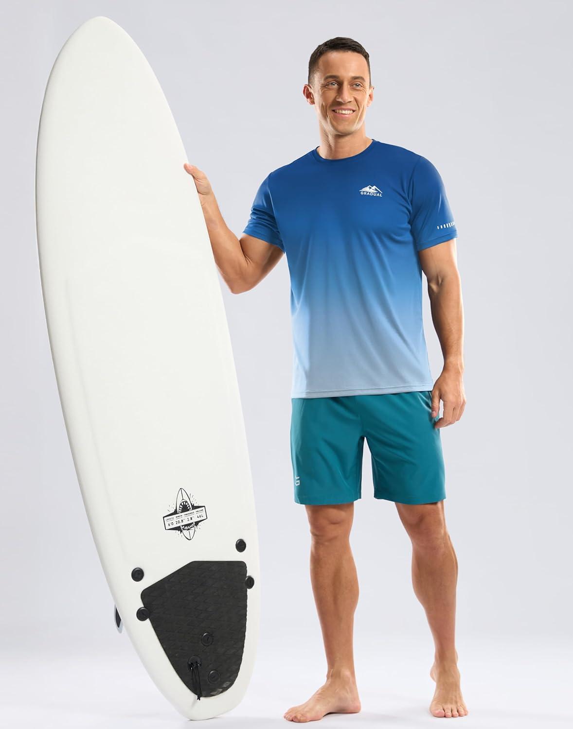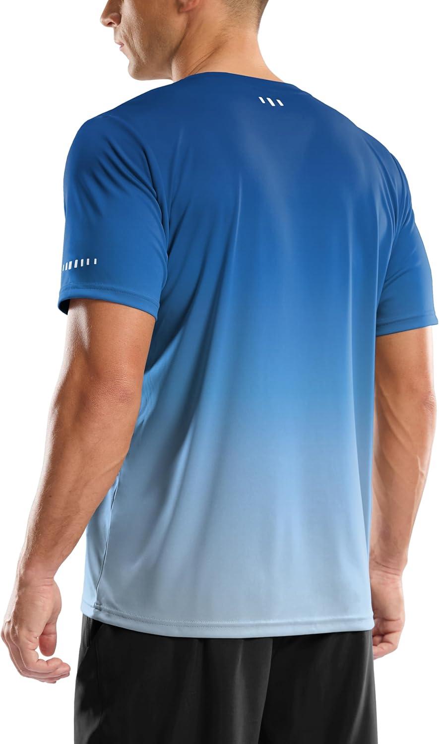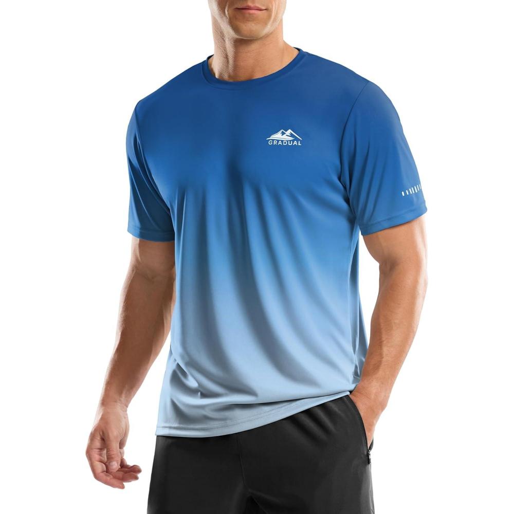 Men's UPF 50+ Sun Protection Dry Fit Workout T-Shirts Rash Guard Swim Shirts Moisture Wicking Tee for Athletic, Beach, Hiking(Gradient Blue)