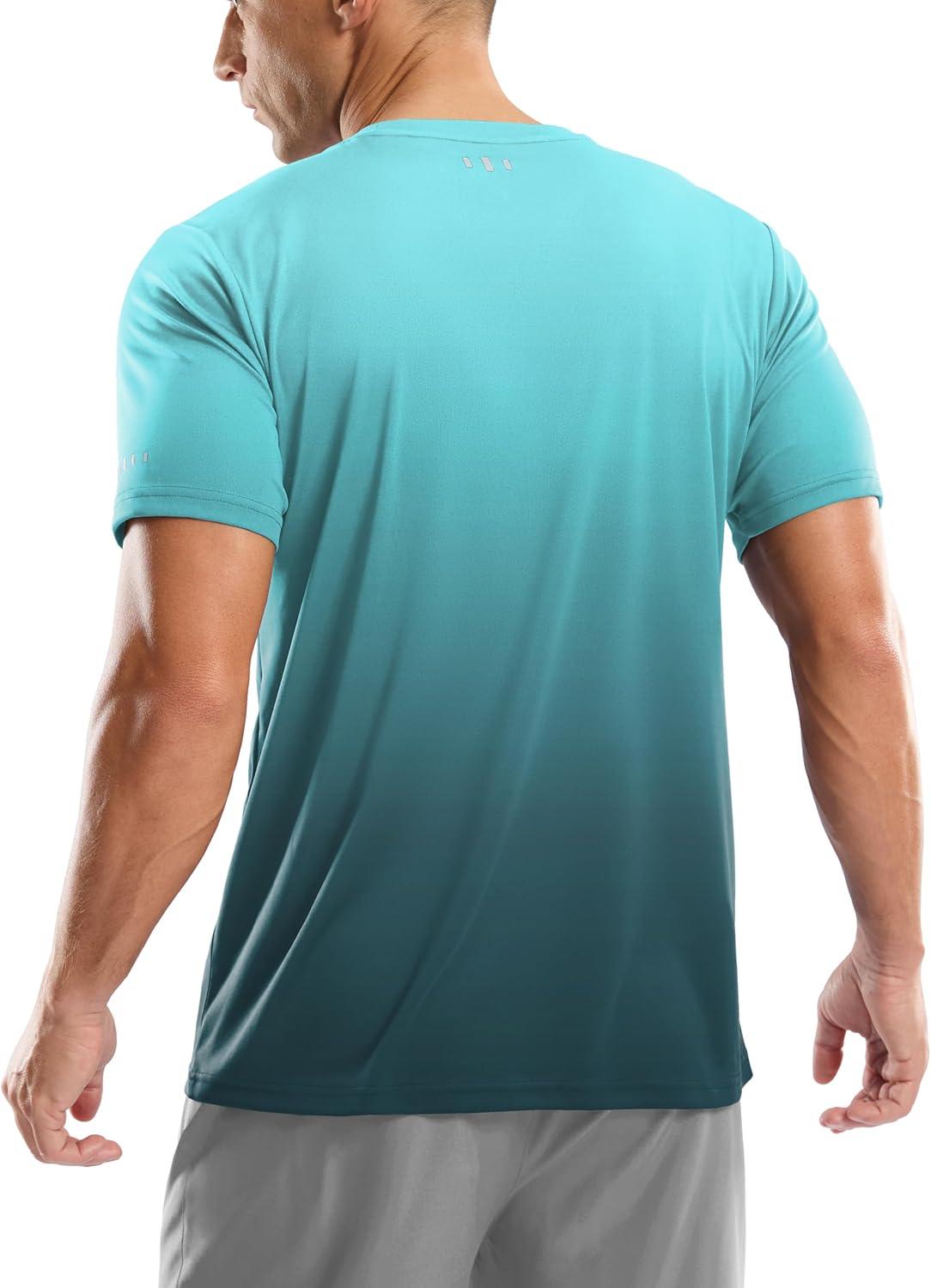 Men's UPF 50+ Sun Protection Dry Fit Workout T-Shirts Rash Guard Swim Shirts Moisture Wicking Tee for Athletic, Beach, Hiking(Gradient Green)