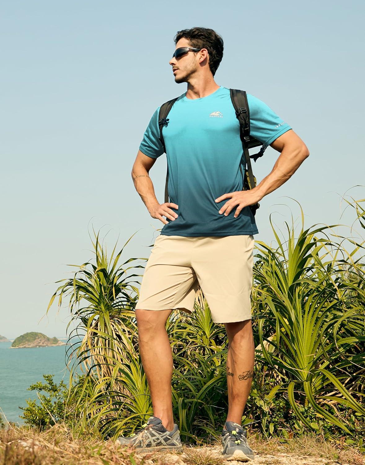 Men’s UPF 50+ Sun Protection Dry Fit Workout T-Shirts Rash Guard Swim Shirts Moisture Wicking Tee for Athletic, Beach, Hiking(Gradient Green)