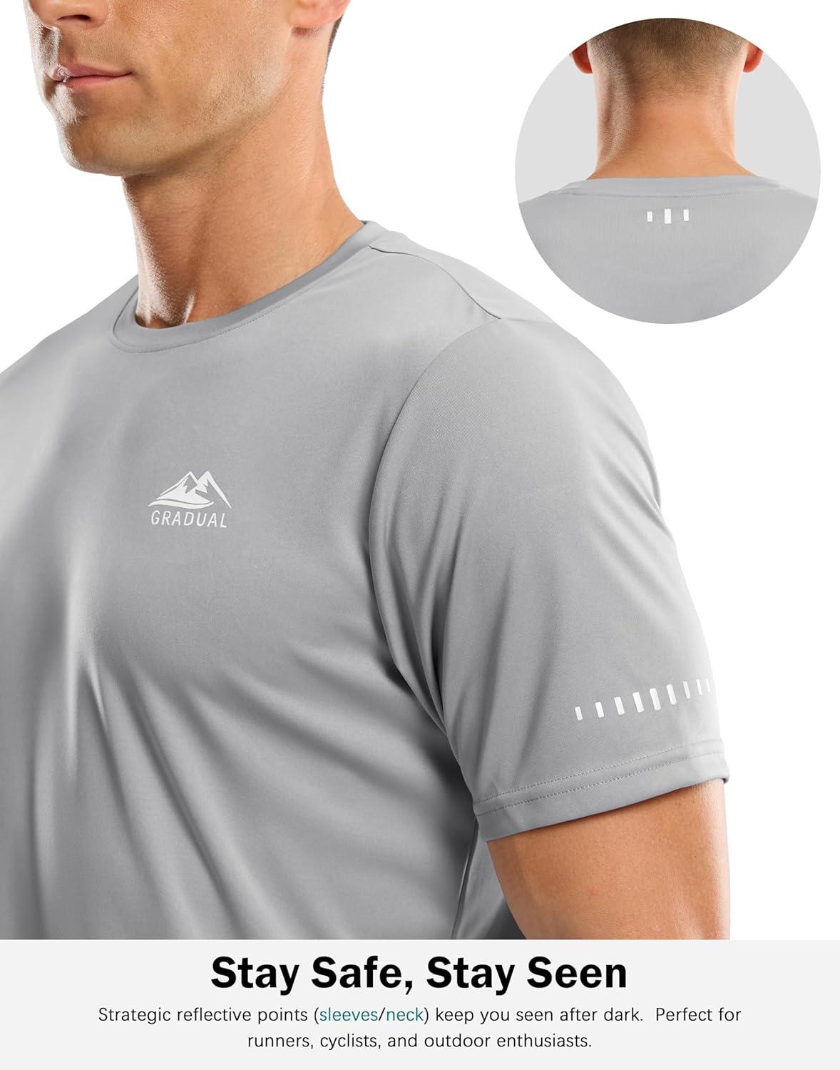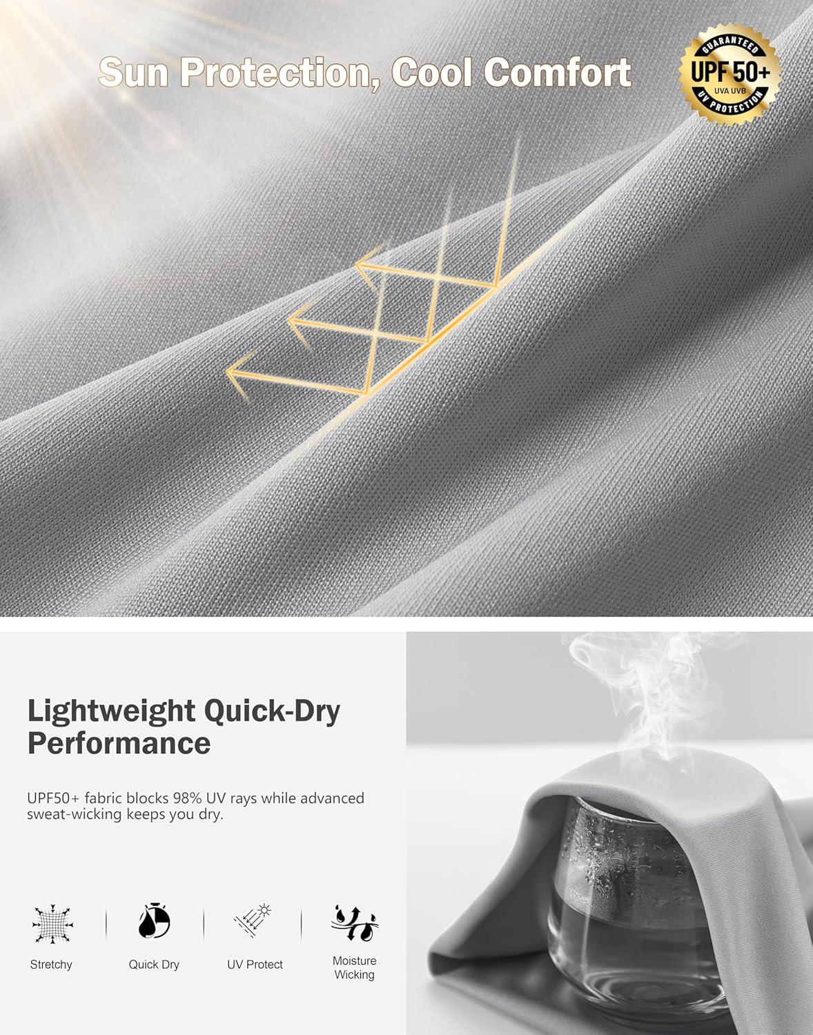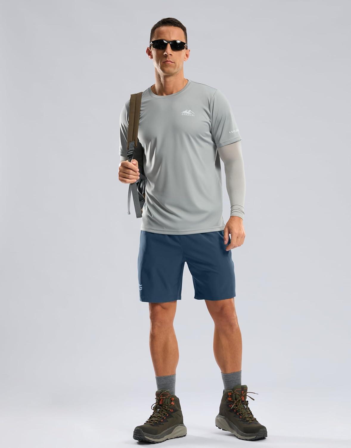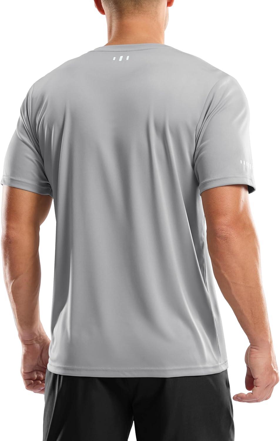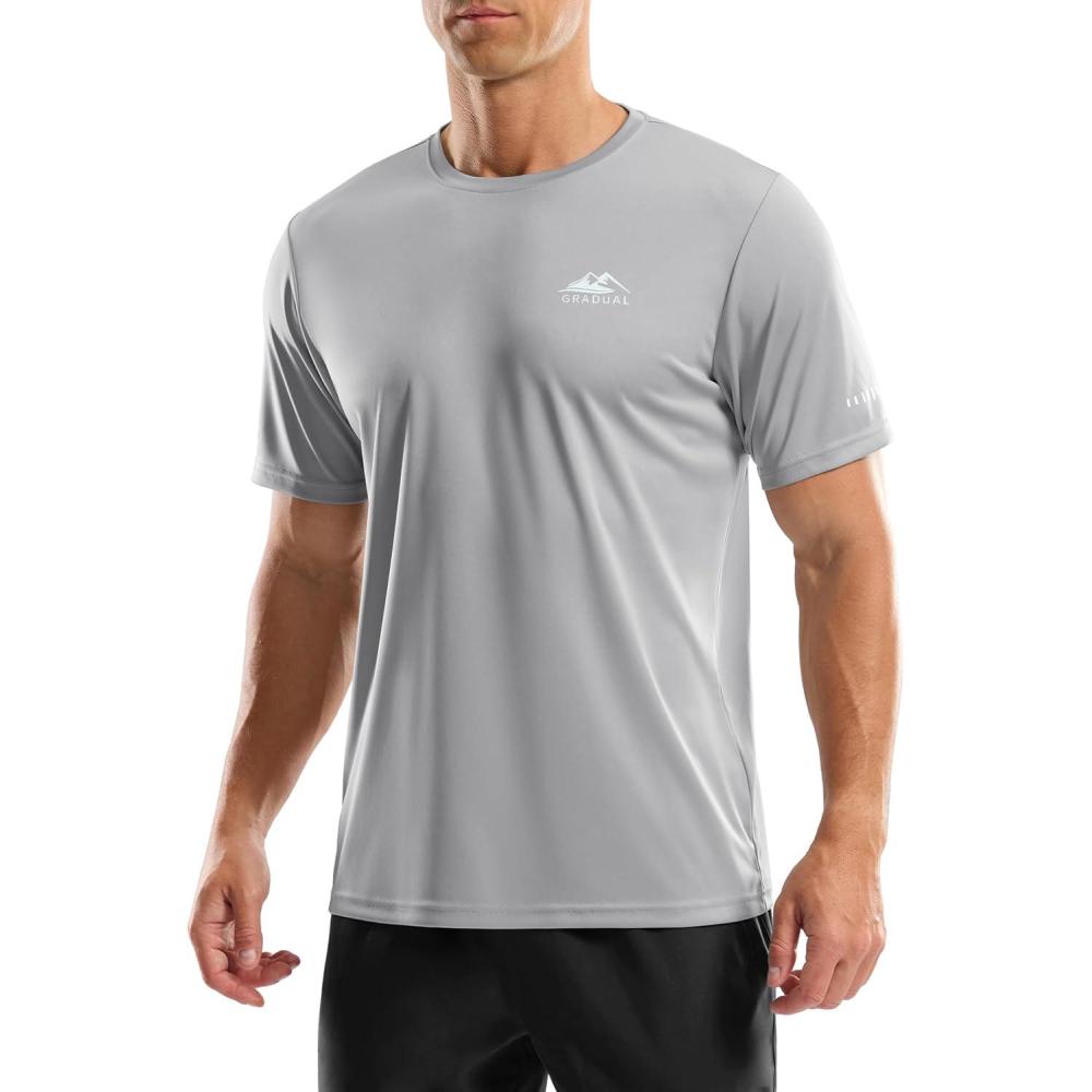 Men's UPF 50+ Sun Protection Dry Fit Workout T-Shirts Rash Guard Swim Shirts Moisture Wicking Tee for Athletic, Beach, Hiking(Light Grey)