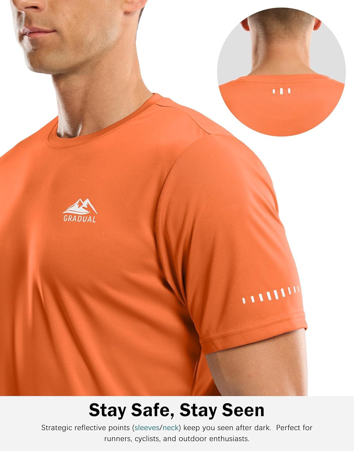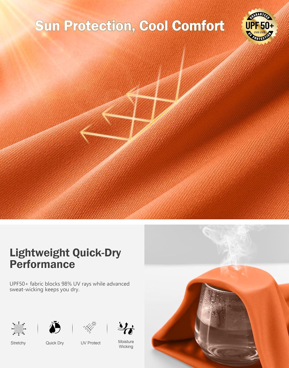 Men’s UPF 50+ Sun Protection Dry Fit Workout T-Shirts Rash Guard Swim Shirts Moisture Wicking Tee for Athletic, Beach, Hiking(Orange)